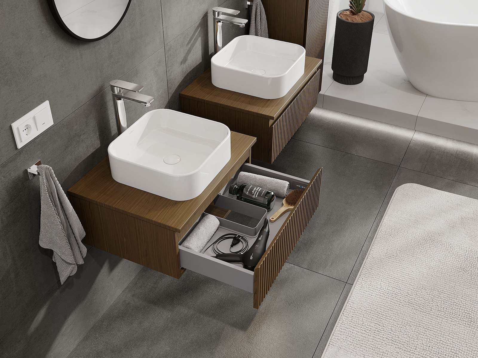 Le corps de l'armoire est livré entièrement assemblé, ce qui signifie un confort maximal et un gain de temps. Vous n'avez pas besoin de passer des heures à assembler le meuble : il suffit de l'installer à l'endroit choisi dans la salle de bain. C'est la solution idéale pour les personnes qui apprécient un assemblage rapide et un effet immédiat.