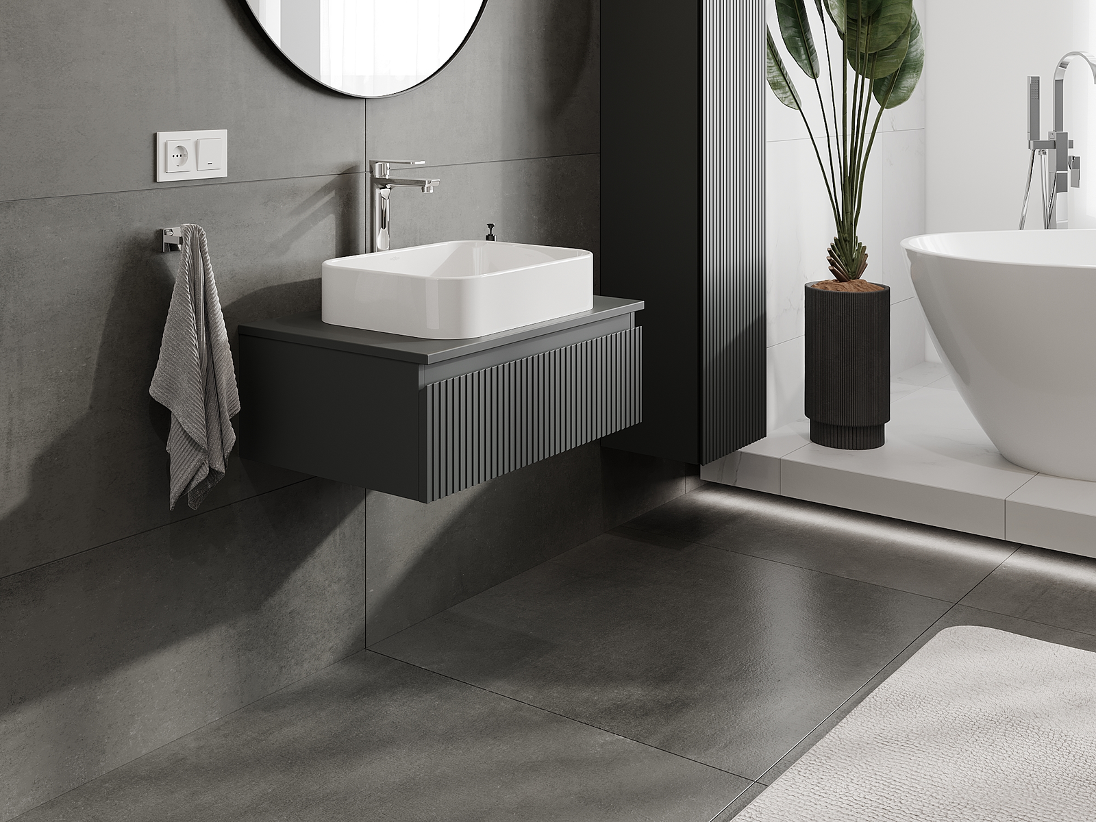 Mexen Rivel meuble de salle de bain sous-lavabo 70 cm, 1 tiroir, rainuré, graphite mat - 91A20-07023-1-BF66
