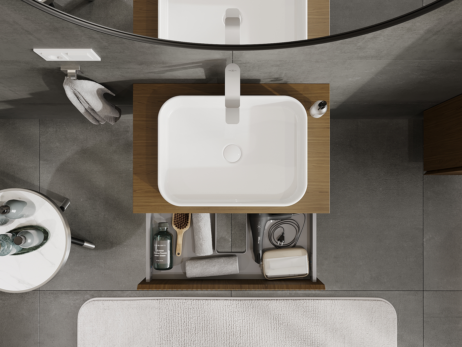 Mexen Rivel meuble de salle de bain sous lavabo 70 cm, 1 tiroir, rainuré, noyer - 91A20-07023-1-BF86