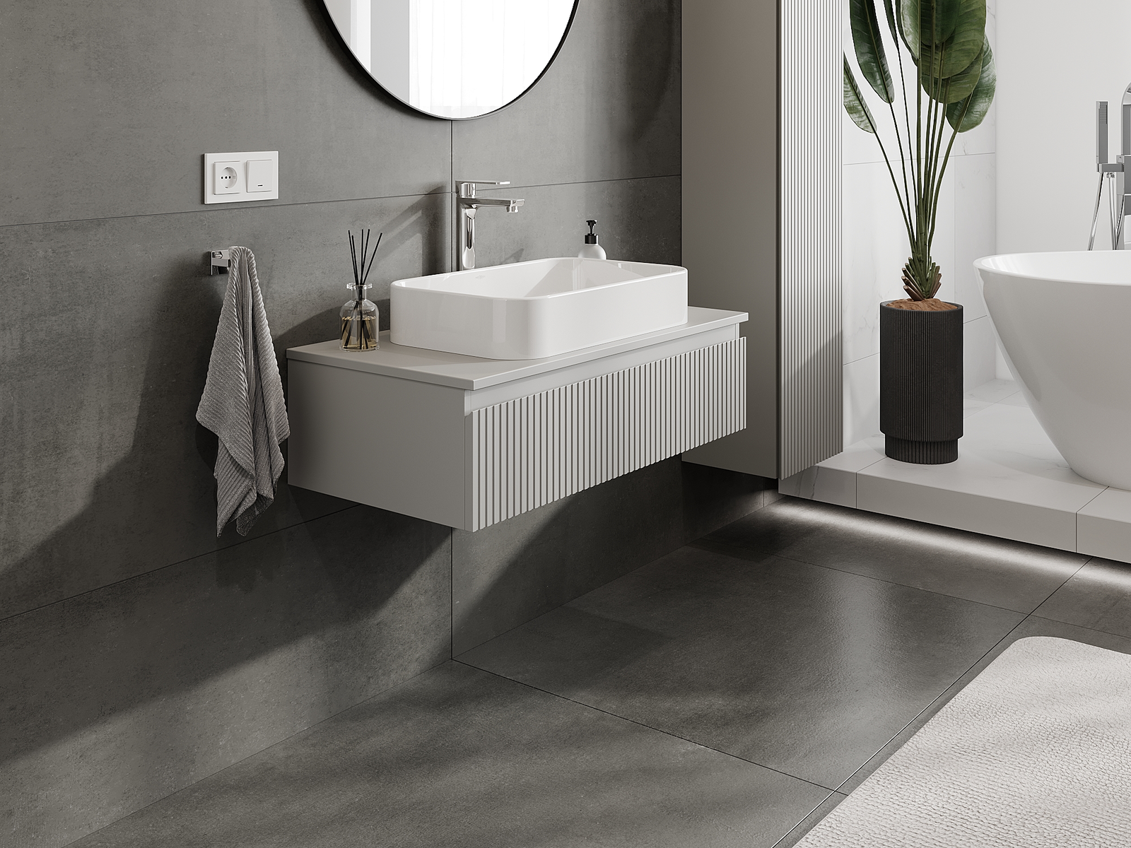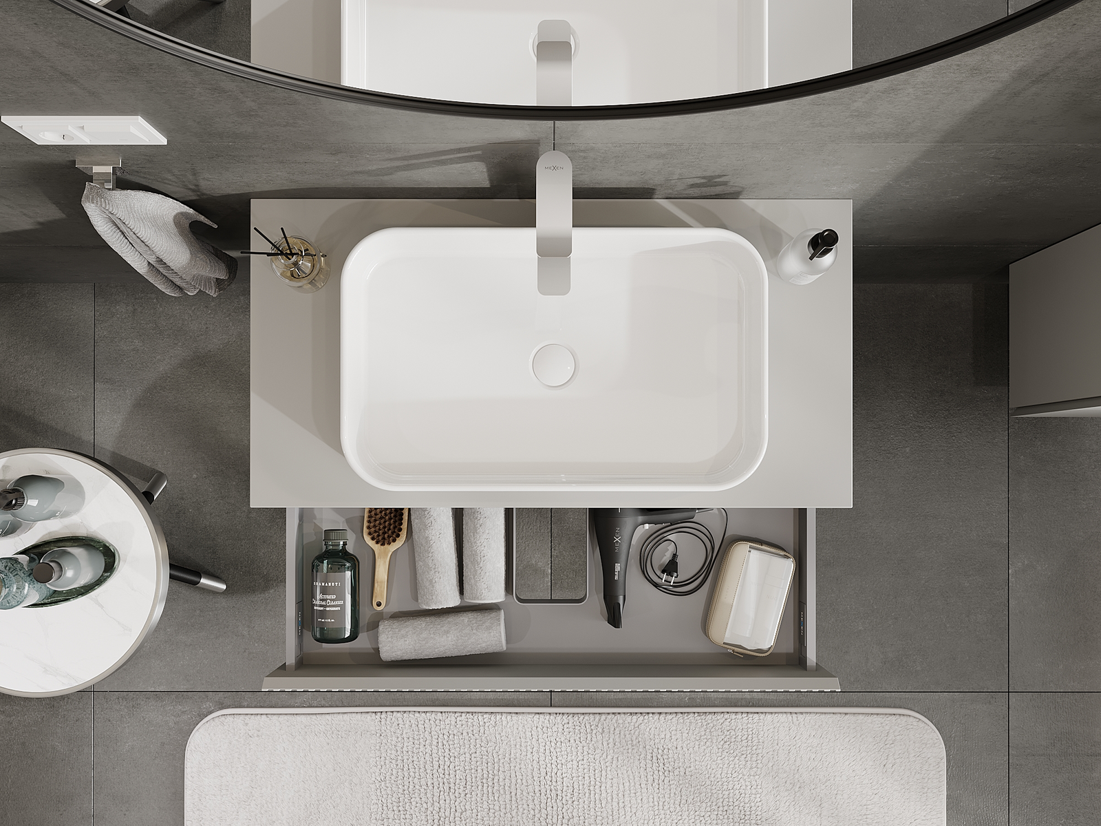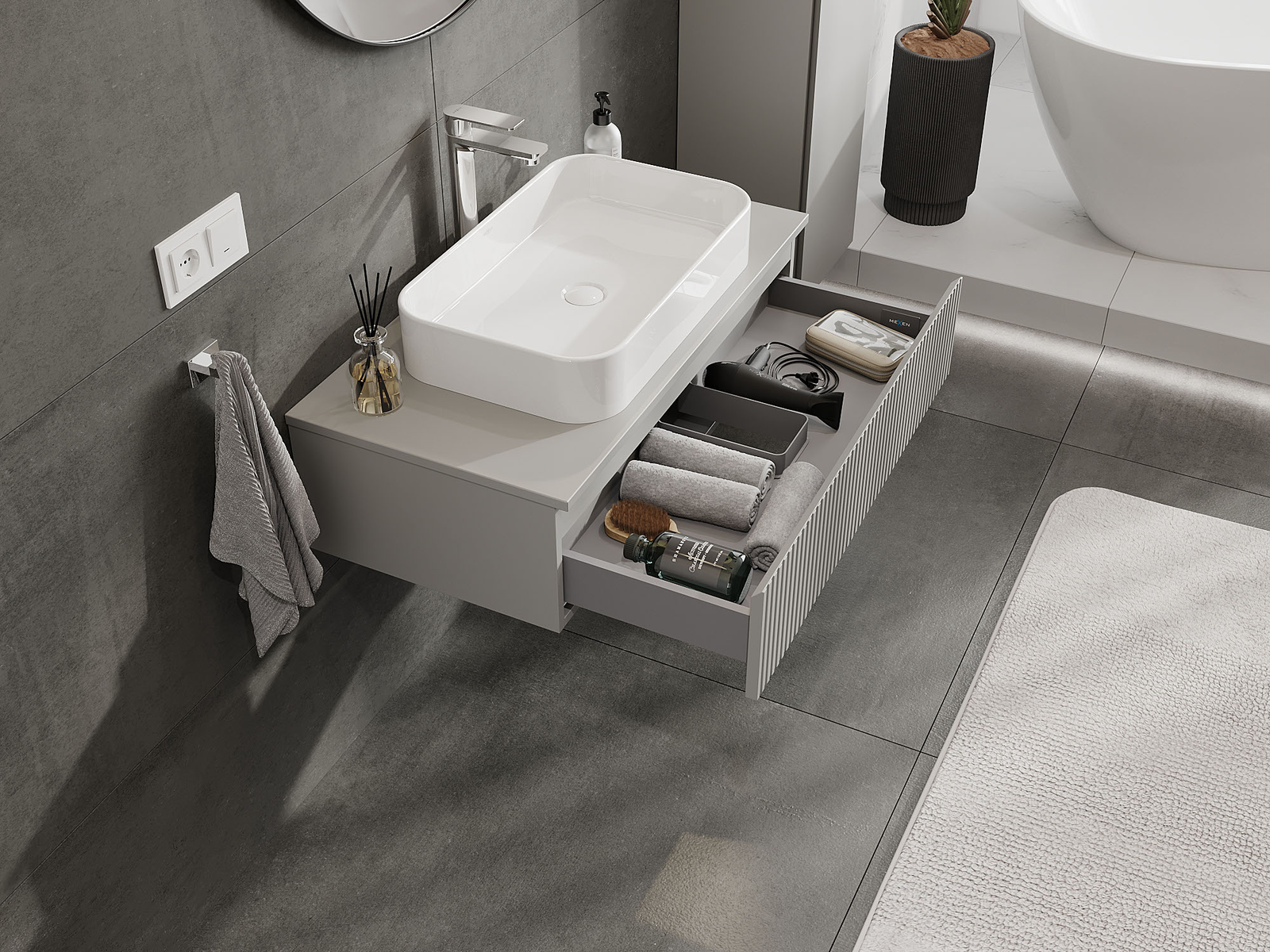 Mexen Rivel meuble de salle de bain sous-lavabo 90 cm, 1 tiroir, rainuré, gris mat - 91A20-09023-1-BF62