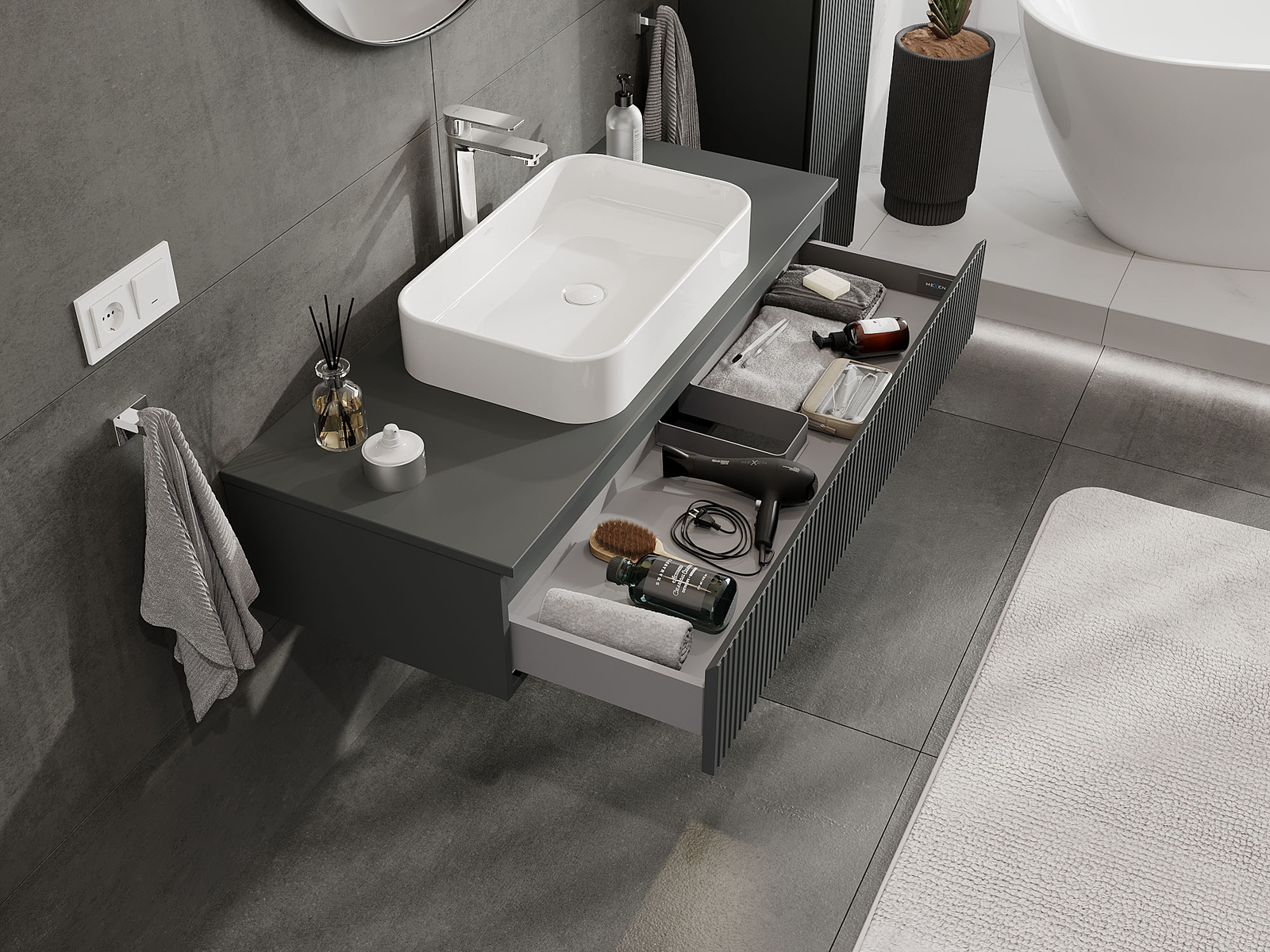 Mexen Rivel meuble de salle de bains sous vasque 120 cm, 1 tiroir, rainuré, gris mat - 91A20-12023-1-BF66