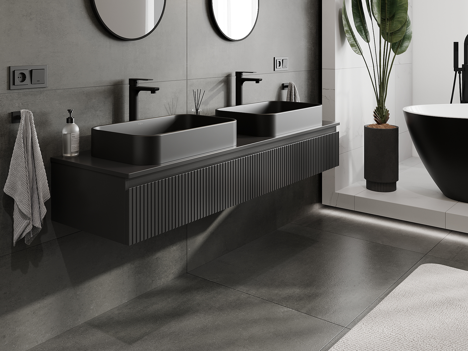 Mexen Rivel armoire de salle de bain sous lavabo 160 cm, 1 tiroir, rainurée, noir mat - 91A20-16023-1-BF71