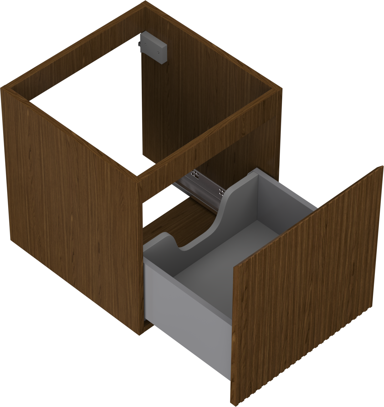 La découpe dans le tiroir est conçue de manière à accueillir le siphon, qui est nécessaire dans les installations de lavabo. Ainsi, le meuble peut être installé de manière pleinement fonctionnelle, sans devoir renoncer à l'espace du tiroir au profit de l'installation.