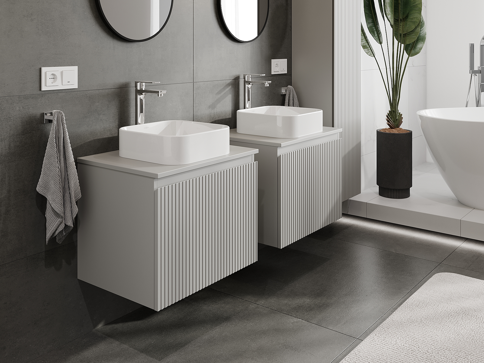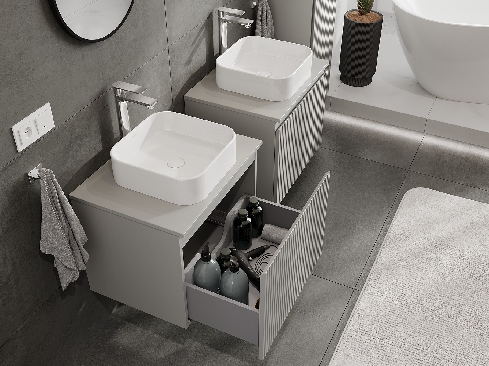 Mexen Rivel armoire de salle de bain sous-lavabo 60 cm, 1 tiroir, rainurée, gris mat - 91A20-06047-1-BF62