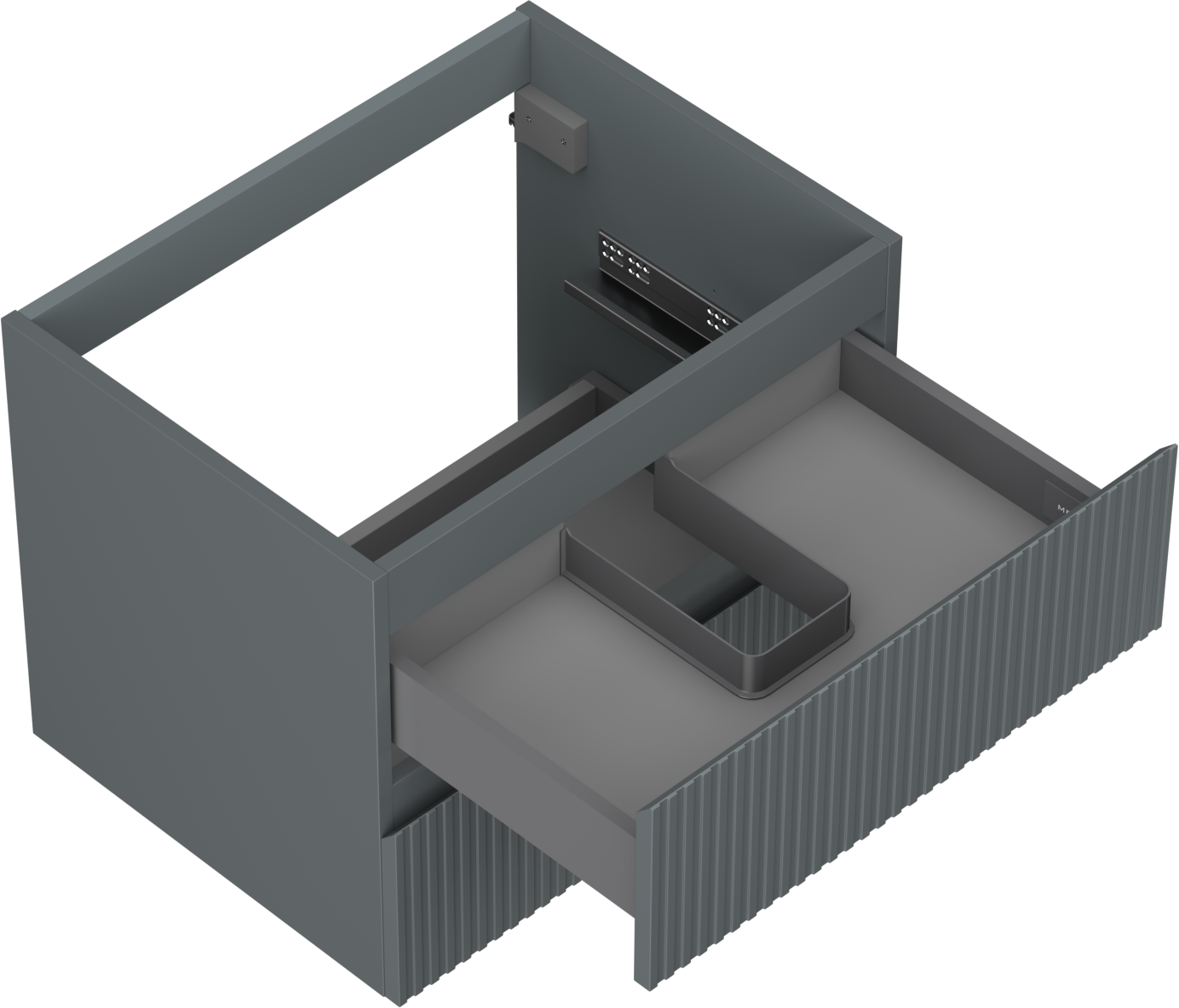 La découpe dans le tiroir est conçue de manière à accueillir le siphon, qui est nécessaire dans les installations de lavabo. Ainsi, le meuble peut être installé de manière pleinement fonctionnelle, sans devoir renoncer à l'espace du tiroir au profit de l'installation.