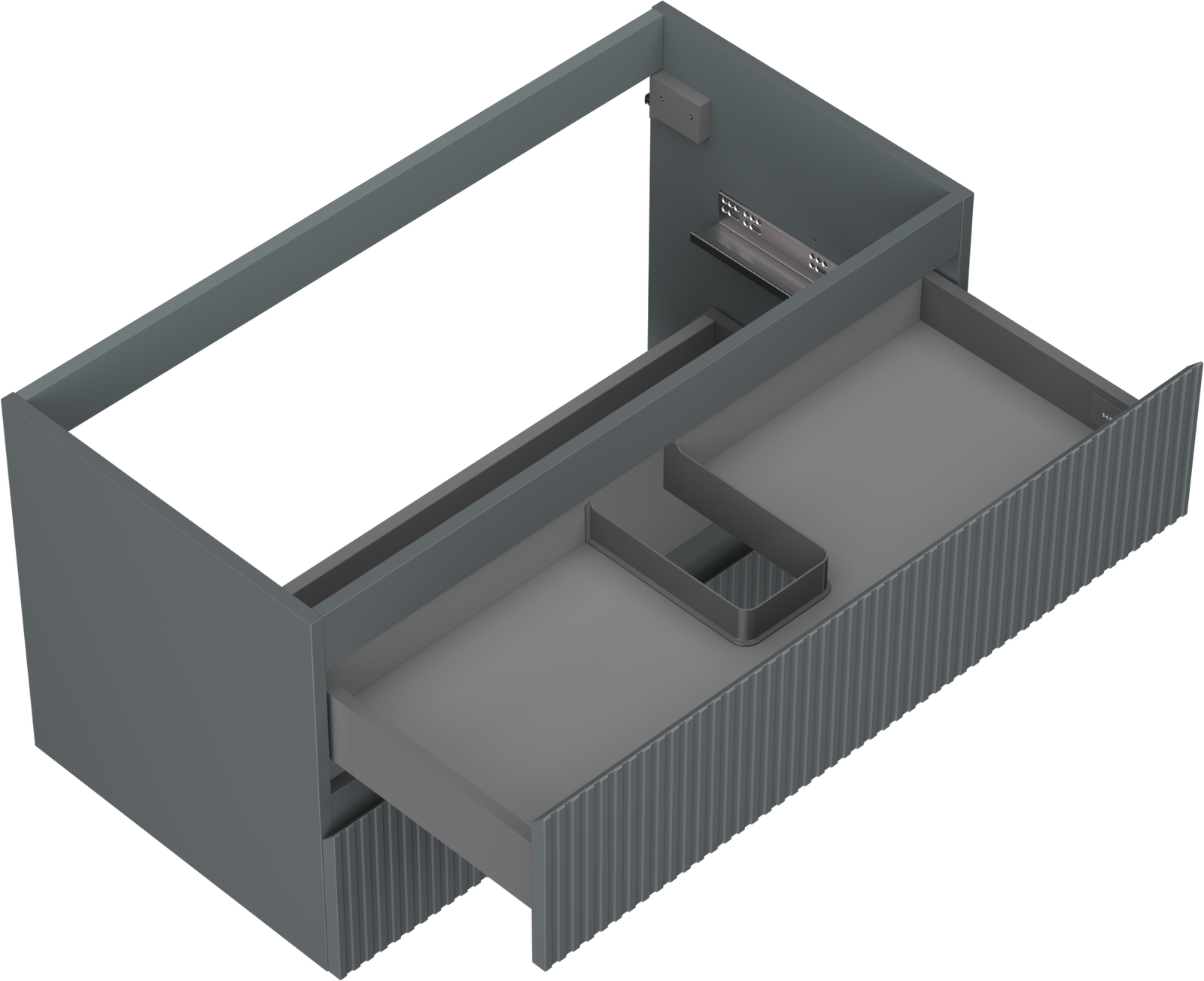 La découpe dans le tiroir est conçue de manière à accueillir le siphon, qui est nécessaire dans les installations de lavabo. Ainsi, le meuble peut être installé de manière pleinement fonctionnelle, sans devoir renoncer à l'espace du tiroir au profit de l'installation.