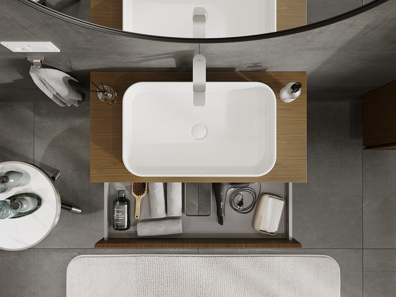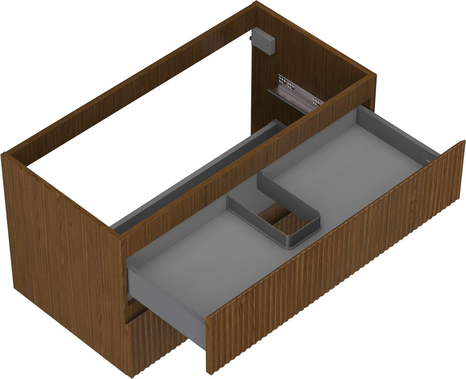 La découpe dans le tiroir est conçue de manière à accueillir le siphon, qui est nécessaire dans les installations de lavabo. Ainsi, le meuble peut être installé de manière pleinement fonctionnelle, sans devoir renoncer à l'espace du tiroir au profit de l'installation.