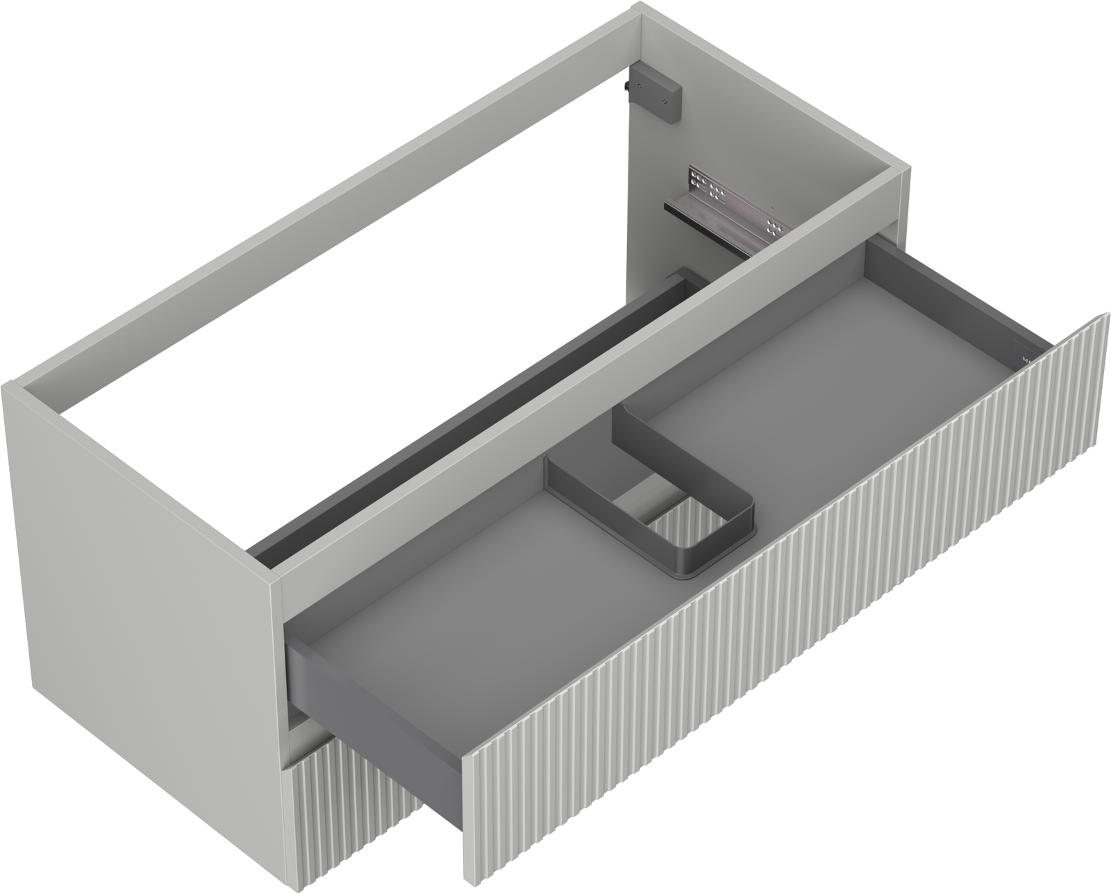 La découpe dans le tiroir est conçue de manière à accueillir le siphon, qui est nécessaire dans les installations de lavabo. Ainsi, le meuble peut être installé de manière pleinement fonctionnelle, sans devoir renoncer à l'espace du tiroir au profit de l'installation.