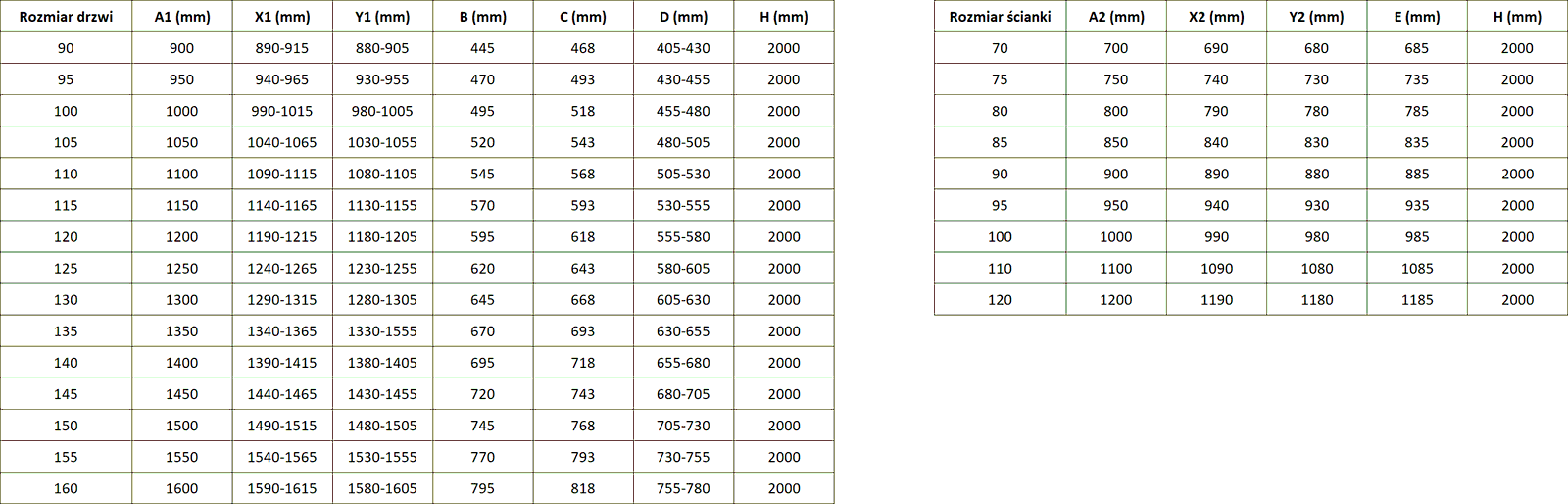 Taille : 115x95 cm (porte 115 cm, paroi 95 cm)