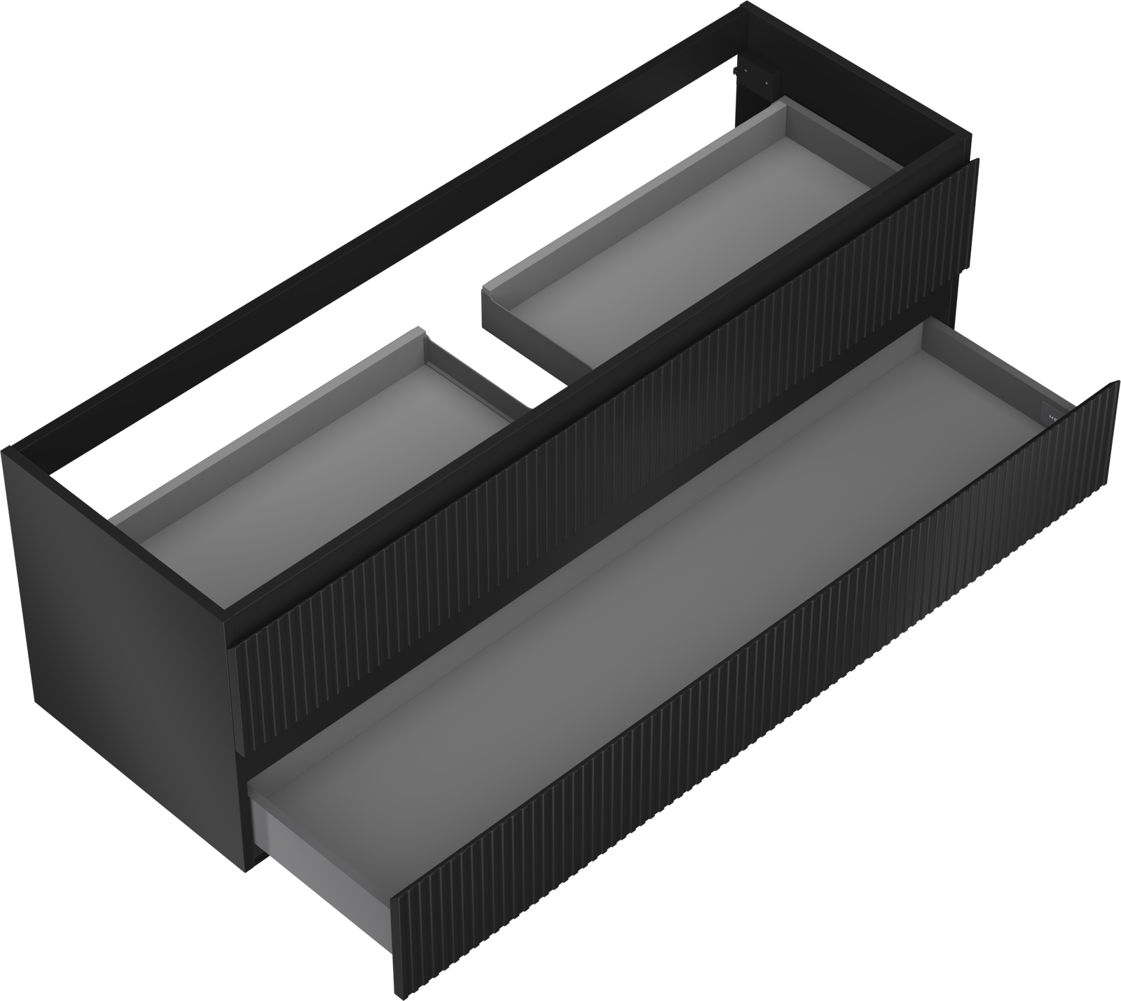 Mexen Rivel meuble de salle de bain sous-lavabo 140 cm, 2 tiroirs, rainuré, noir mat - 91A20-14047-2-BFF71