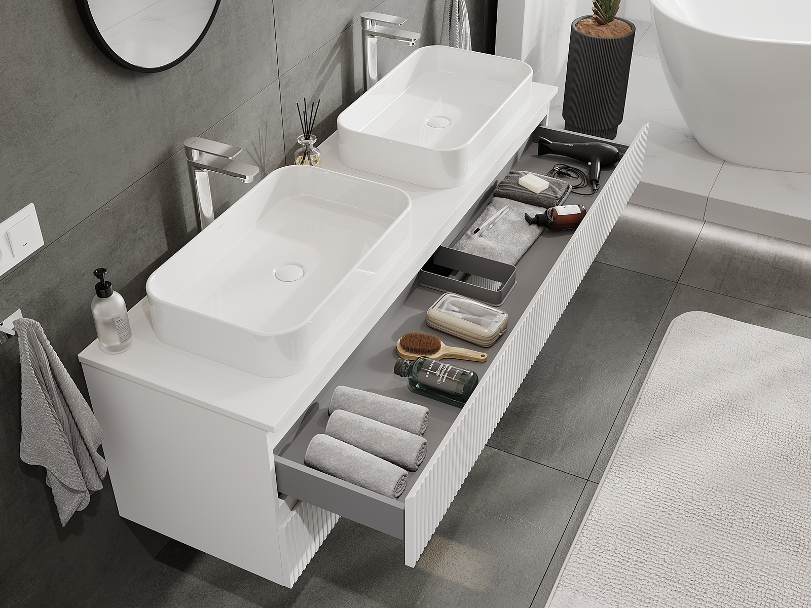 Grâce à des matériaux solides, une fabrication précise et des solutions technologiques modernes, le produit assure un confort d'utilisation, une résistance à l'humidité et aux variations de température, ainsi qu'un aspect élégant qui s'adapte à différents styles de salle de bain.