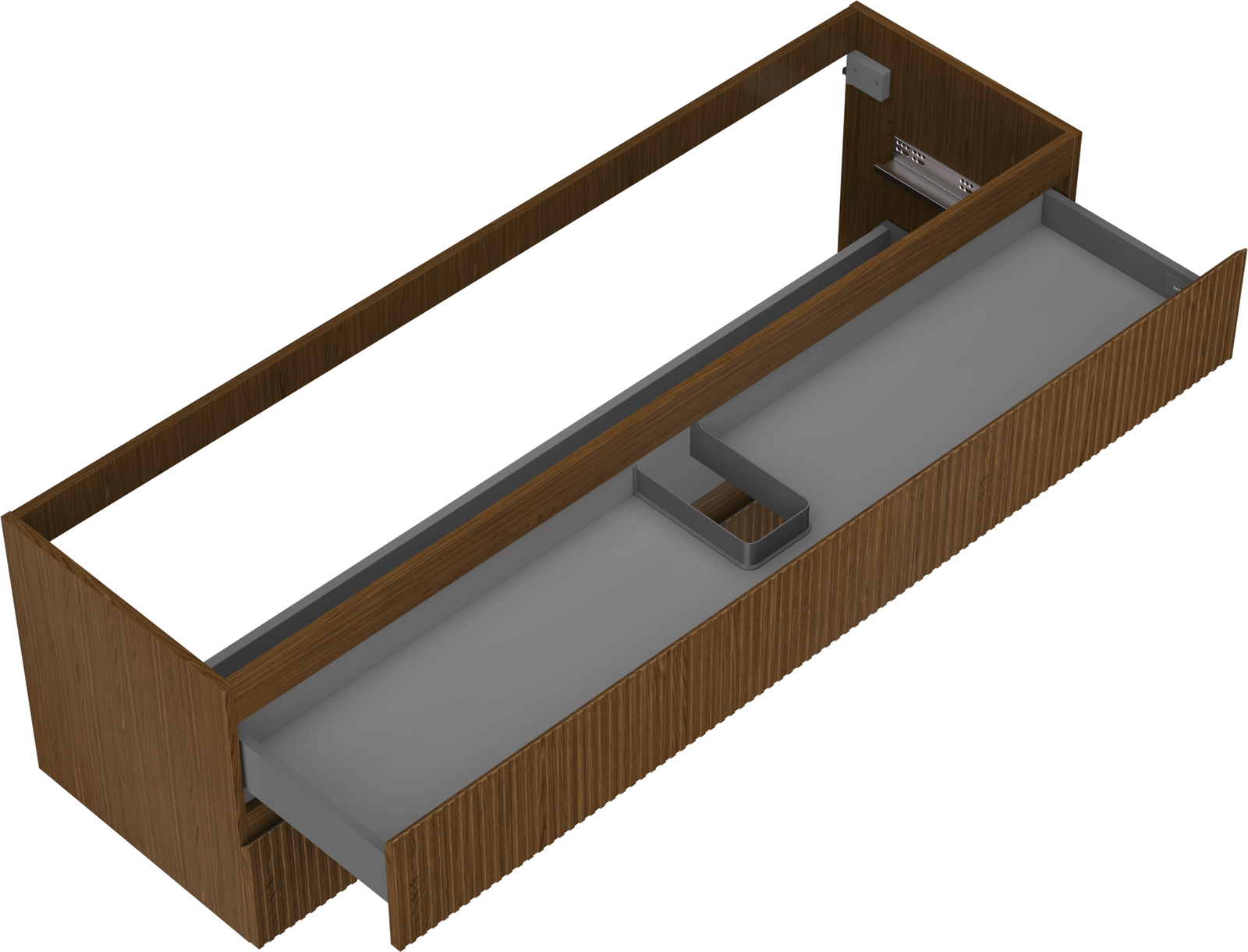 La découpe dans le tiroir est conçue de manière à accueillir le siphon, qui est nécessaire dans les installations de lavabo. Ainsi, le meuble peut être installé de manière pleinement fonctionnelle, sans devoir renoncer à l'espace du tiroir au profit de l'installation.