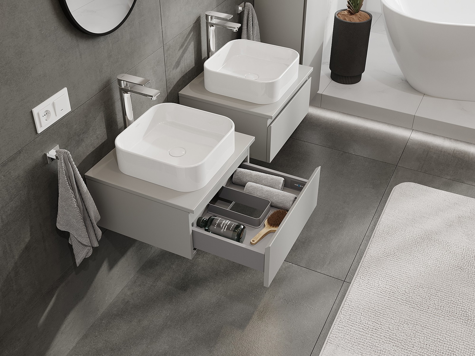 Mexen Orio armoire de salle de bain sous lavabo 50 cm avec plateau, 1 tiroir, gris mat - 91A10-05023-1-BFC62