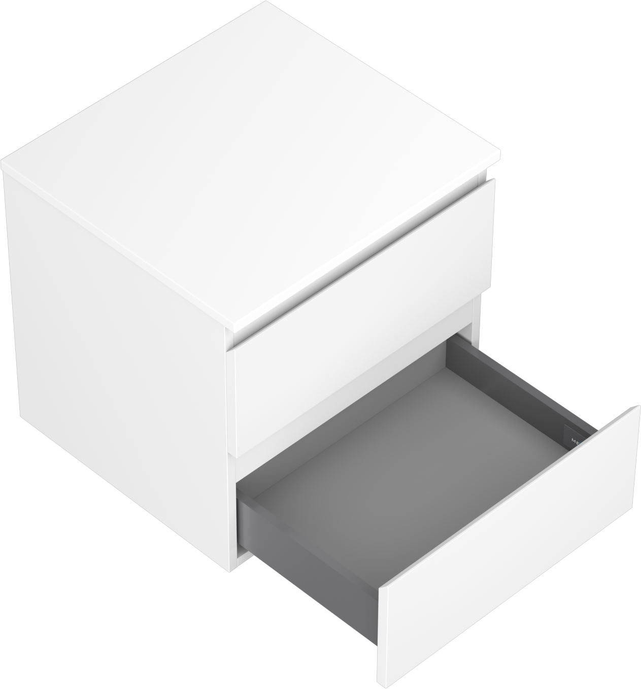 La découpe dans le tiroir est conçue de manière à accueillir le siphon, qui est nécessaire dans les installations de lavabo. Ainsi, le meuble peut être installé de manière pleinement fonctionnelle, sans devoir renoncer à l'espace du tiroir au profit de l'installation.