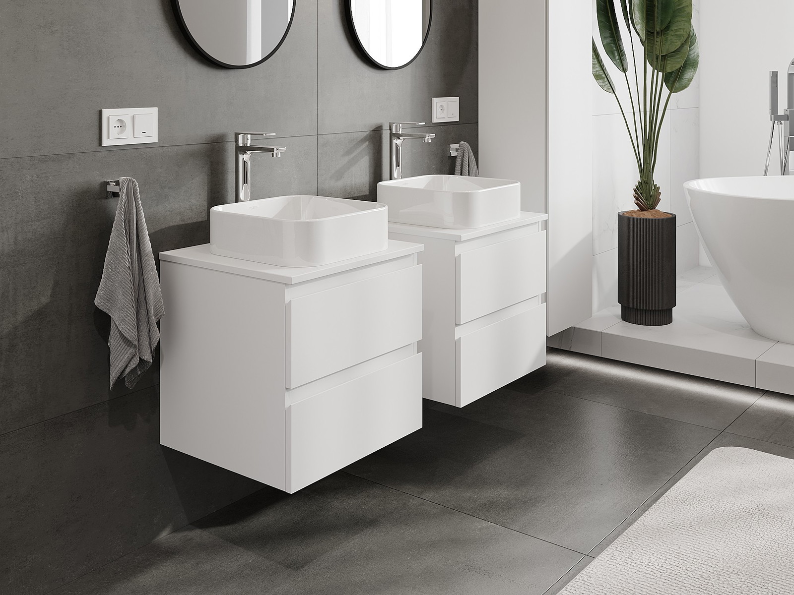 Mexen Orio meuble de salle de bain sous-lavabo 50 cm avec plateau, 2 tiroirs, blanc mat - 91A10-05047-2-BFFC01