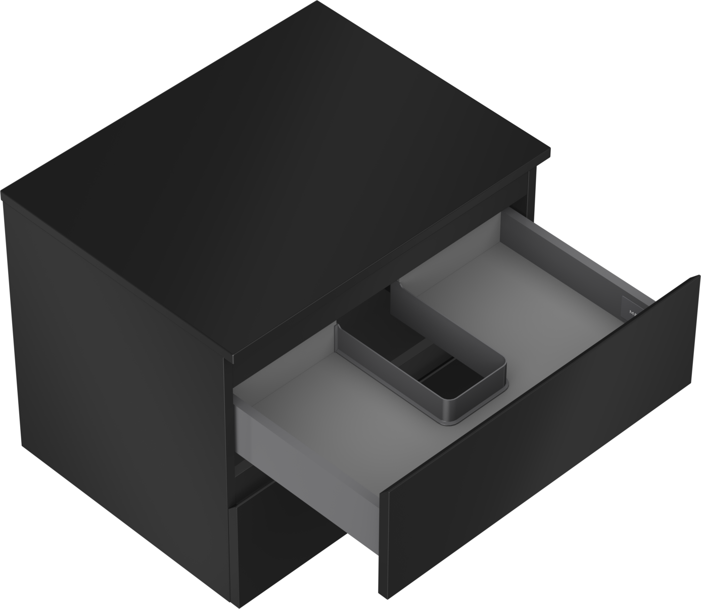 La découpe dans le tiroir est conçue de manière à accueillir le siphon, qui est nécessaire dans les installations de lavabo. Ainsi, le meuble peut être installé de manière pleinement fonctionnelle, sans devoir renoncer à l'espace du tiroir au profit de l'installation.