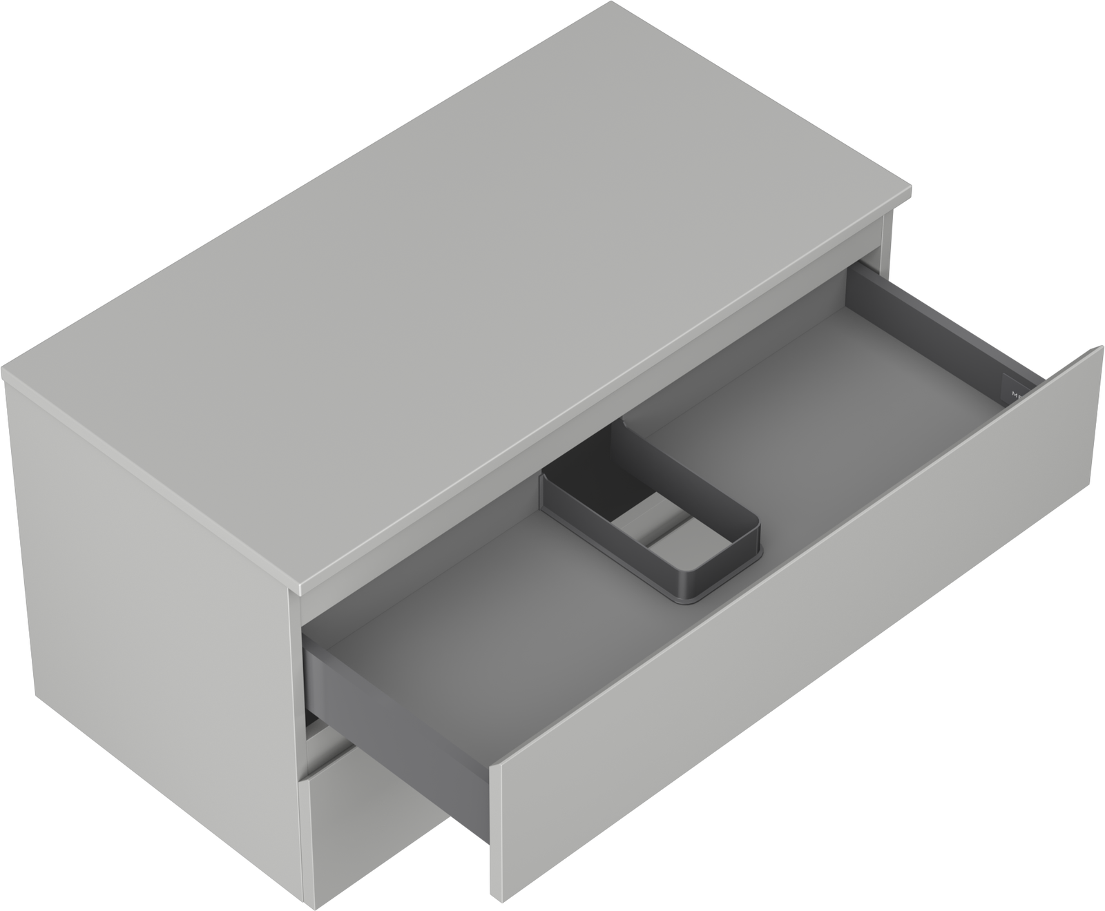 La découpe dans le tiroir est conçue de manière à accueillir le siphon, qui est nécessaire dans les installations de lavabo. Ainsi, le meuble peut être installé de manière pleinement fonctionnelle, sans devoir renoncer à l'espace du tiroir au profit de l'installation.