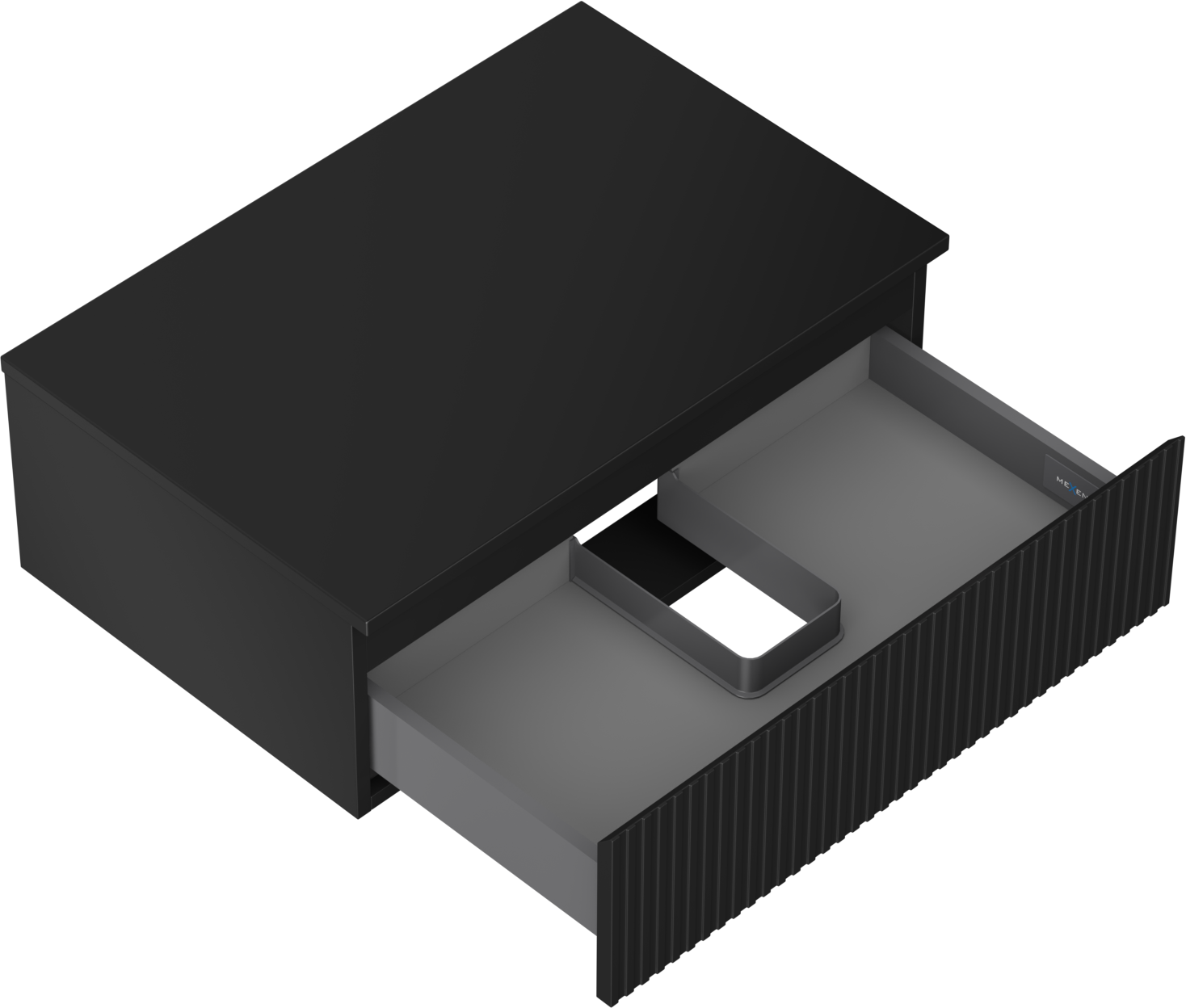 Mexen Rivel meuble de salle de bains sous-vasque 70 cm avec plateau, 1 tiroir, rainuré, noir mat - 91A20-07023-1-BFC71