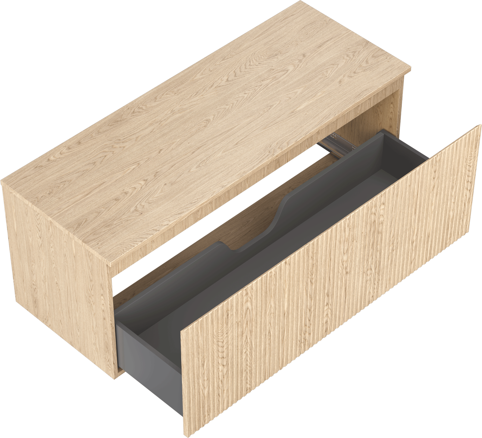La découpe du tiroir est conçue pour accueillir un siphon, indispensable pour l'installation d'un lavabo. Cela permet d'installer le meuble de manière entièrement fonctionnelle, sans avoir à occuper d'espace dans le tiroir.