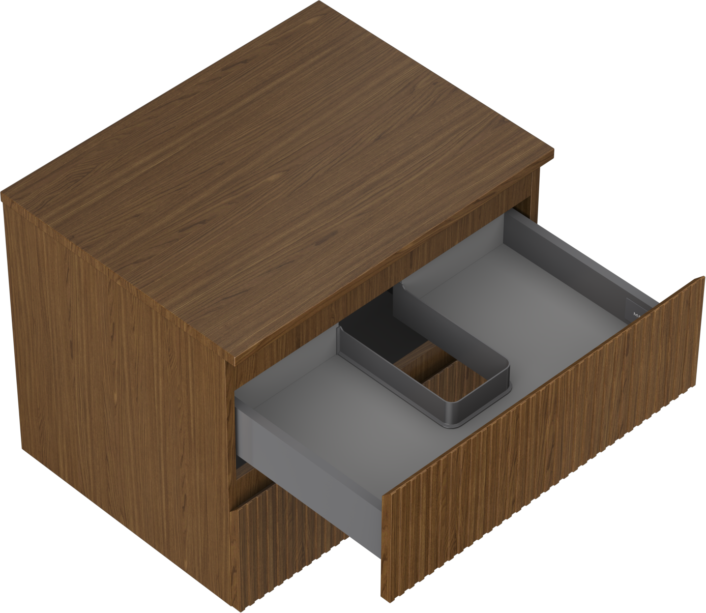 La découpe dans le tiroir est conçue de manière à accueillir le siphon, qui est nécessaire dans les installations de lavabo. Ainsi, le meuble peut être installé de manière pleinement fonctionnelle, sans devoir renoncer à l'espace du tiroir au profit de l'installation.