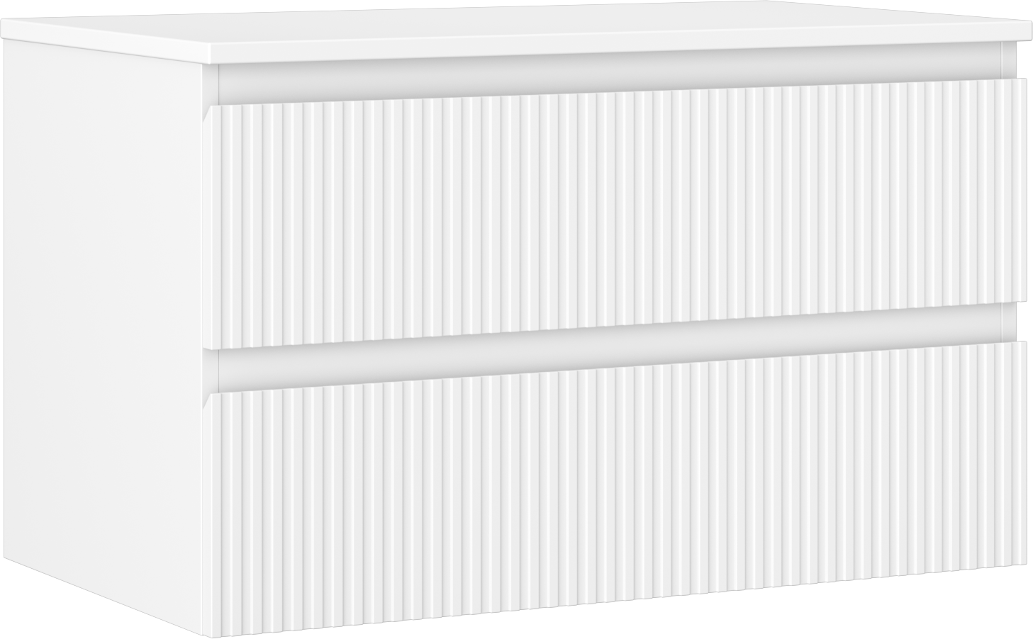 Mexen Rivel meuble de salle de bains sous-vasque 80 cm avec plateau, 2 tiroirs, rainuré, blanc mat - 91A20-08047-2-BFFC01