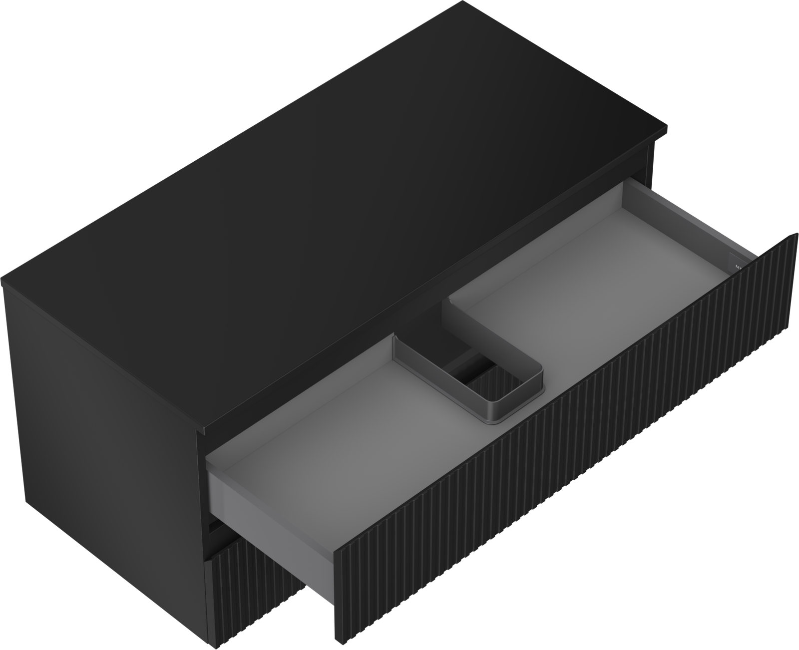 Mexen Rivel meuble de salle de bain sous-lavabo 100 cm avec plateau, 2 tiroirs, rainuré, noir mat - 91A20-10047-2-BFFC71