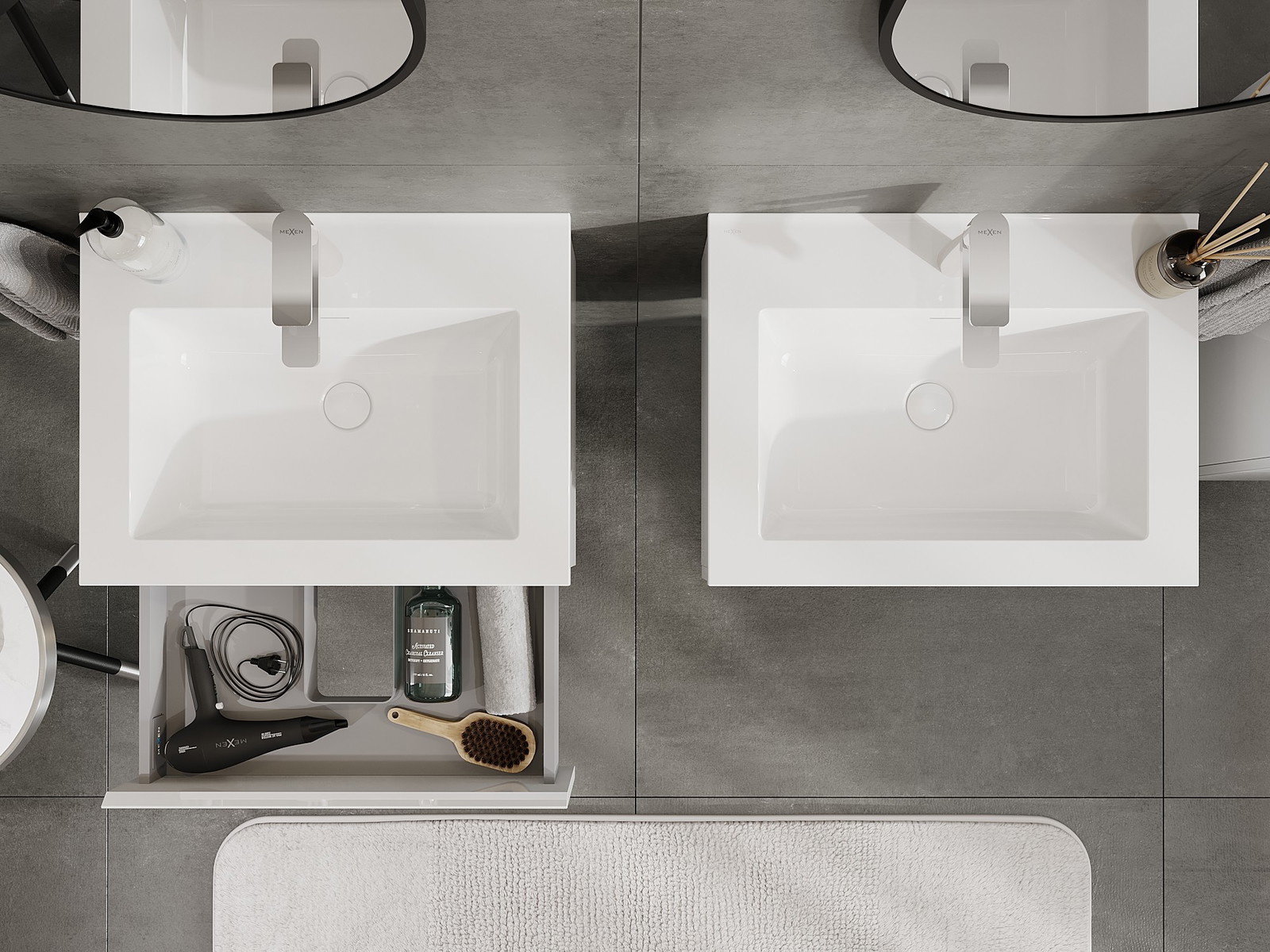 Mexen Orio meuble de salle de bain 60 cm avec lavabo Otis, 1 tiroir, blanc brillant - 91A10-06023-1-BF00-W18M00