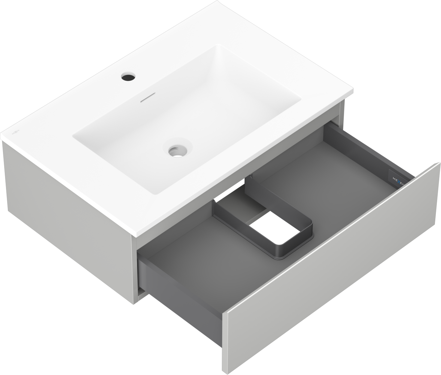 La découpe dans le tiroir est conçue de manière à accueillir le siphon, qui est nécessaire dans les installations de lavabo. Ainsi, le meuble peut être installé de manière pleinement fonctionnelle, sans devoir renoncer à l'espace du tiroir au profit de l'installation.