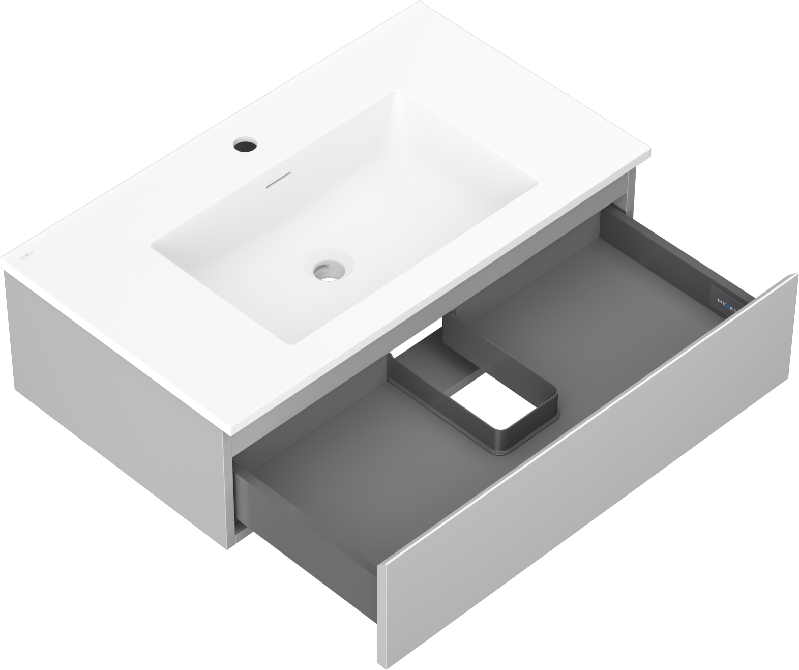 La découpe dans le tiroir est conçue de manière à accueillir le siphon, qui est nécessaire dans les installations de lavabo. Ainsi, le meuble peut être installé de manière pleinement fonctionnelle, sans devoir renoncer à l'espace du tiroir au profit de l'installation.
