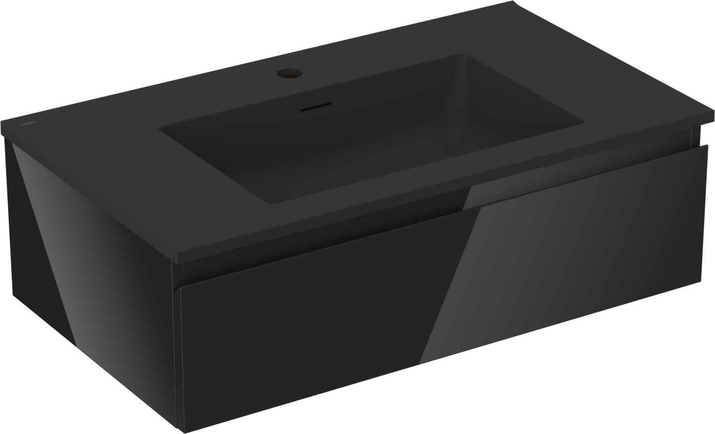 Mexen Orio meuble de salle de bains 80 cm avec lavabo Otis, 1 tiroir, noir brillant/noir mat - 91A10-08023-1-BF70-W18M71