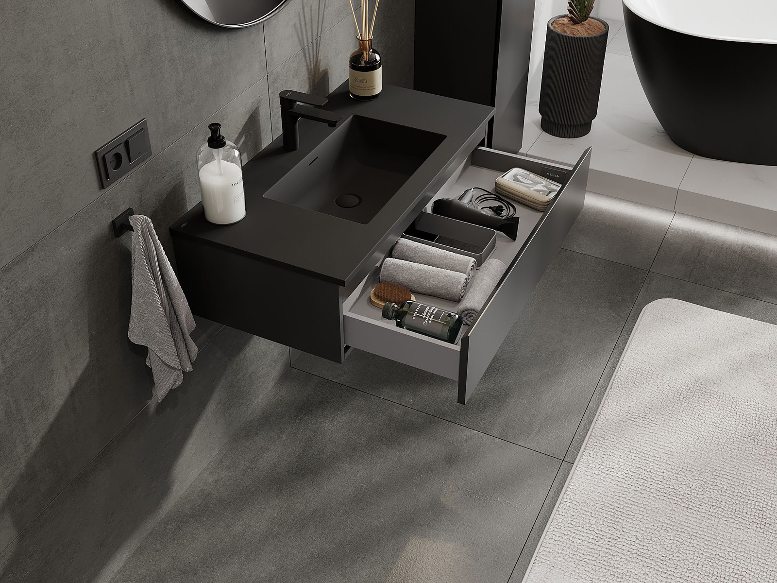 Mexen Orio armoire de salle de bain 90 cm avec lavabo Otis, 1 tiroir, noir mat - 91A10-09023-1-BF71-W18M71
