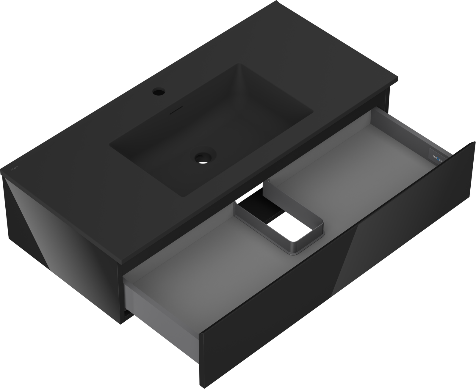 Mexen Orio meuble de salle de bains 100 cm avec lavabo Otis, 1 tiroir, noir brillant/noir mat - 91A10-10023-1-BF70-W18M71
