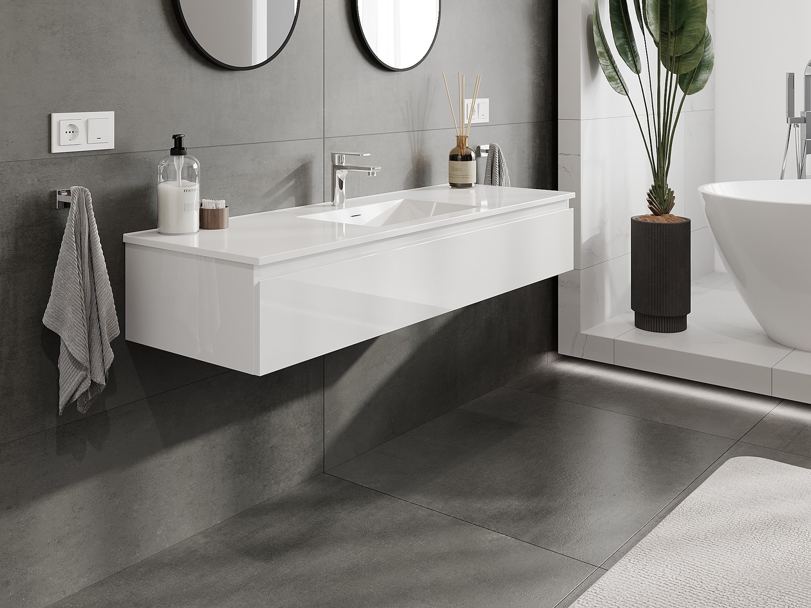 Mexen Orio meuble de salle de bain 140 cm avec lavabo Otis, 1 tiroir, blanc brillant - 91A10-14023-1-BF00-W18M00