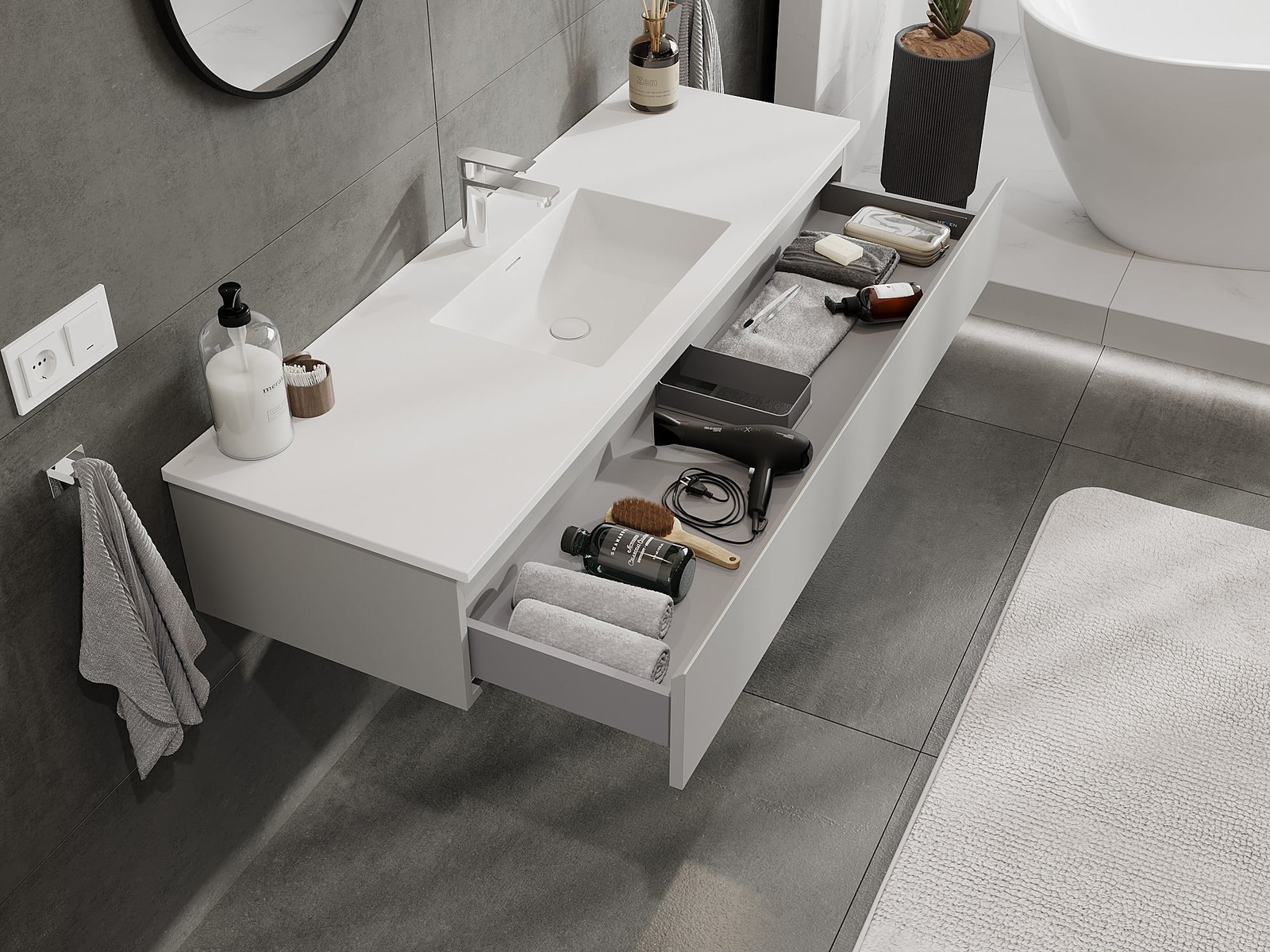 Mexen Orio meuble lavabo 140 cm avec vasque Otis, 1 tiroir, gris mat/blanc mat - 91A10-14023-1-BF62-W18M01