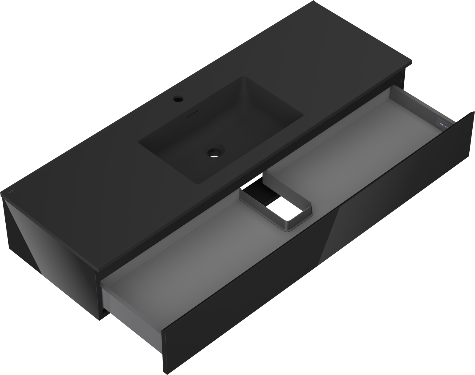 Mexen Orio meuble de salle de bain 140 cm avec lavabo Otis, 1 tiroir, noir brillant/noir mat - 91A10-14023-1-BF70-W18M71