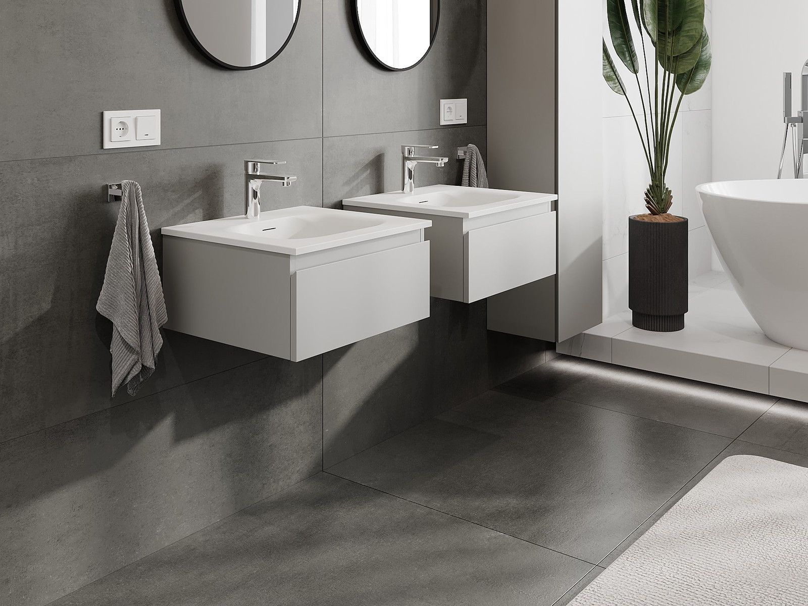 Mexen Orio meuble de salle de bain 50 cm avec lavabo Vela, 1 tiroir, gris mat/blanc mat - 91A10-05023-1-BF62-W23M01