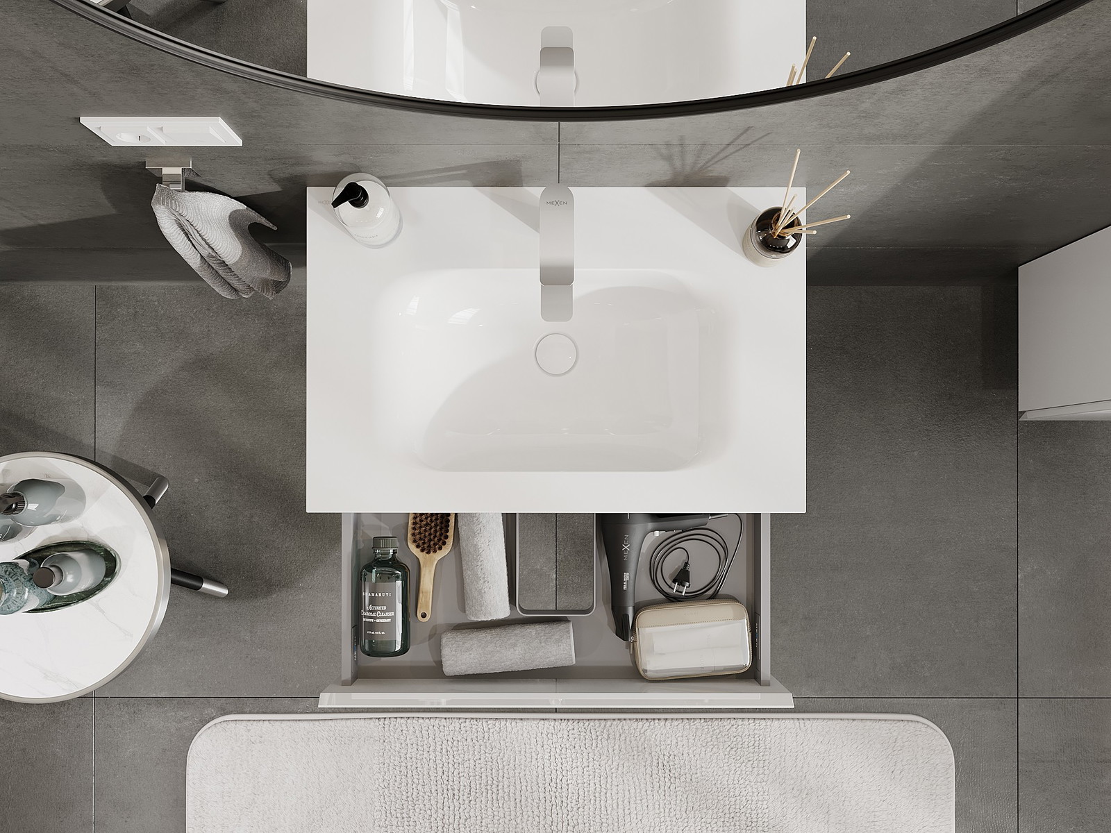 Mexen Orio meuble de salle de bain 70 cm avec lavabo Vela, 1 tiroir, blanc brillant - 91A10-07023-1-BF00-W23M00