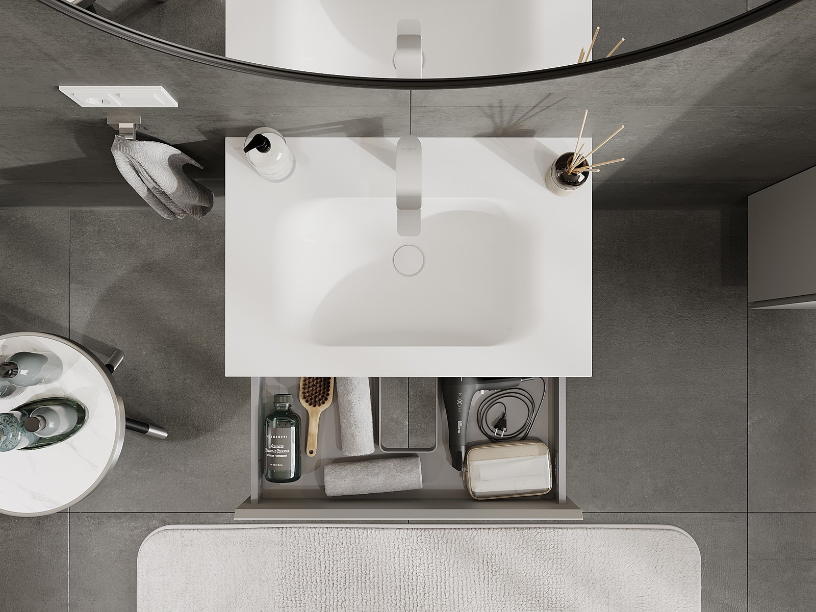Mexen Orio armoire de salle de bain 70 cm avec lavabo Vela, 1 tiroir, gris mat/blanc mat - 91A10-07023-1-BF62-W23M01