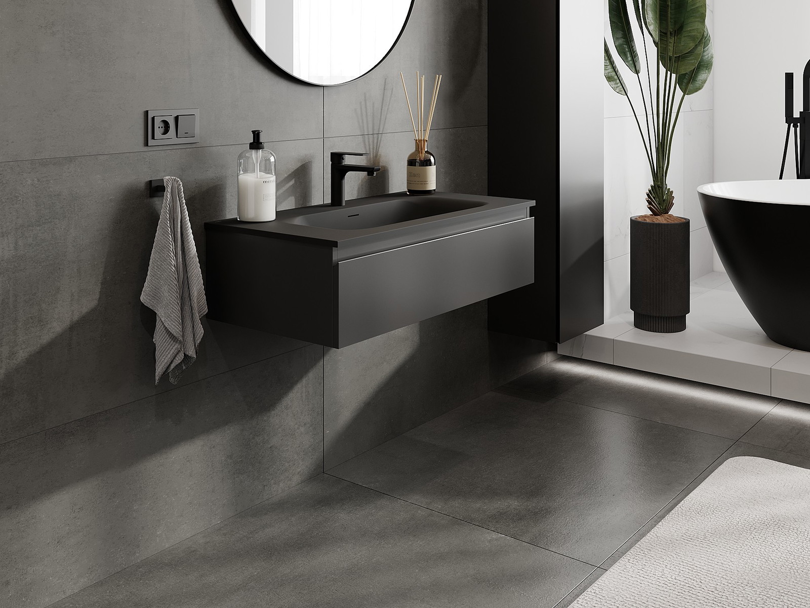 Mexen Orio meuble de salle de bain 90 cm avec lavabo Vela, 1 tiroir, noir mat - 91A10-09023-1-BF71-W23M71