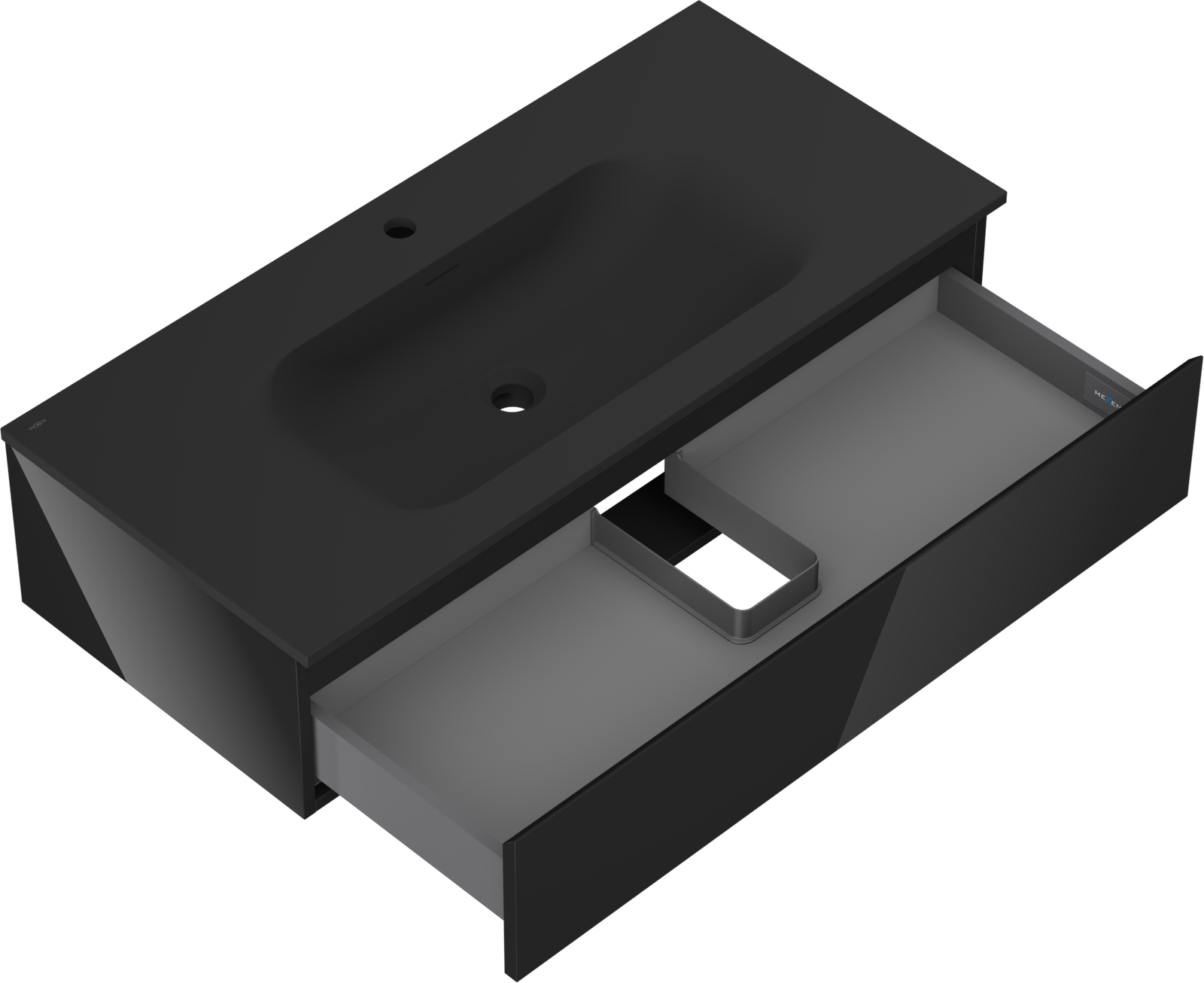 Mexen Orio armoire de salle de bain 100 cm avec lavabo Vela, 1 tiroir, noir brillant/noir mat - 91A10-10023-1-BF70-W23M71