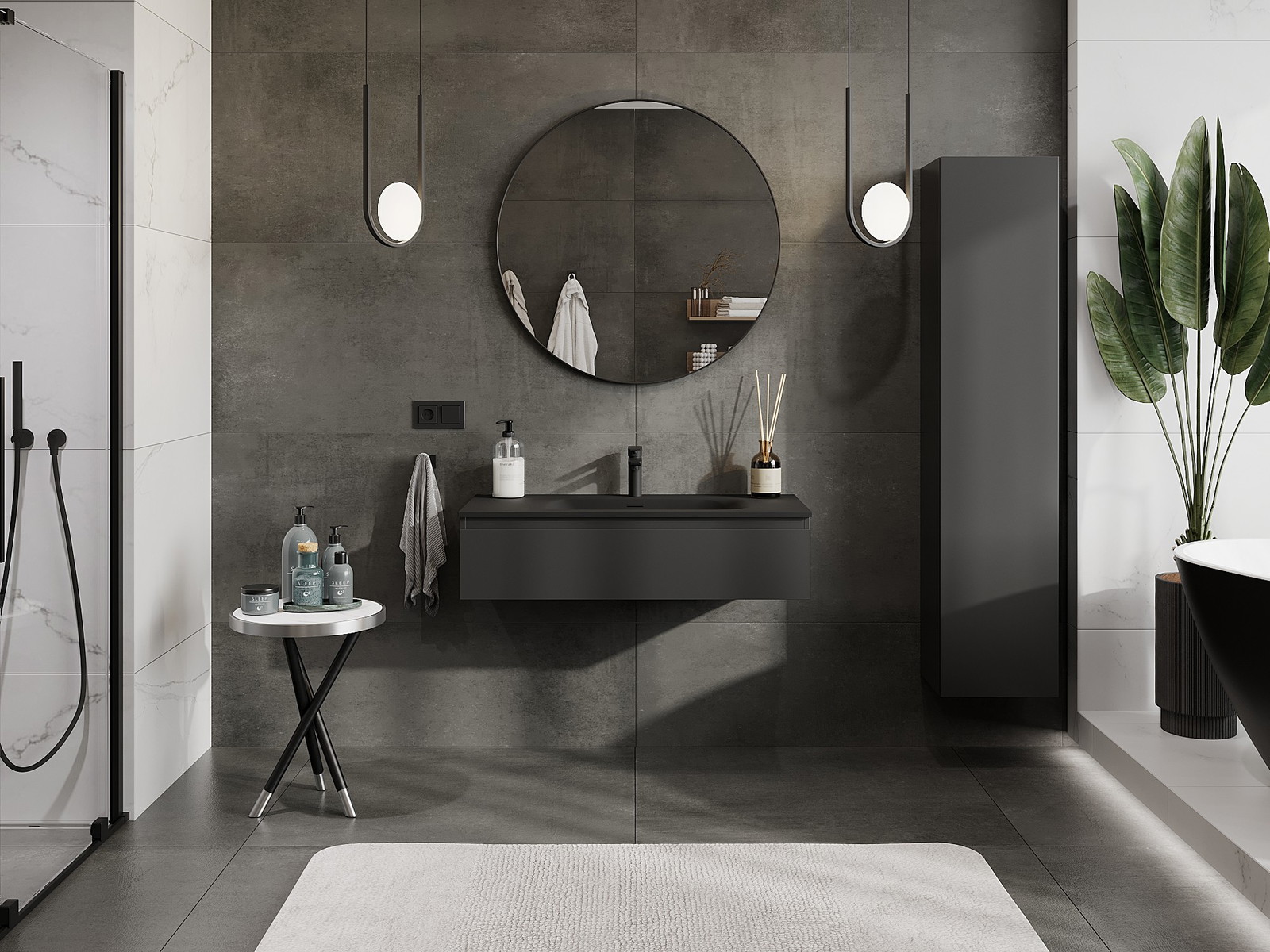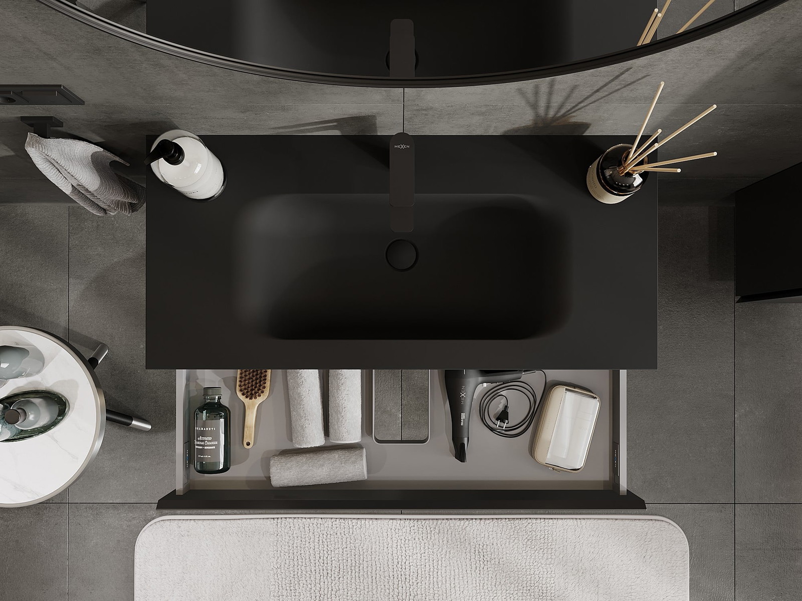 Mexen Orio meuble de salle de bains 100 cm avec lavabo Vela, 1 tiroir, noir mat - 91A10-10023-1-BF71-W23M71