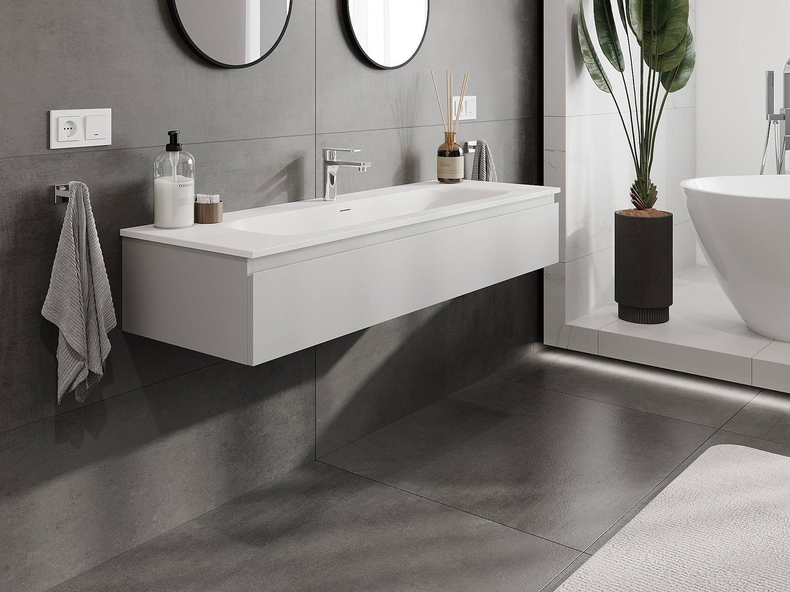 Mexen Orio meuble de salle de bain 140 cm avec lavabo Vela, 1 tiroir, gris mat/blanc mat - 91A10-14023-1-BF62-W23M01