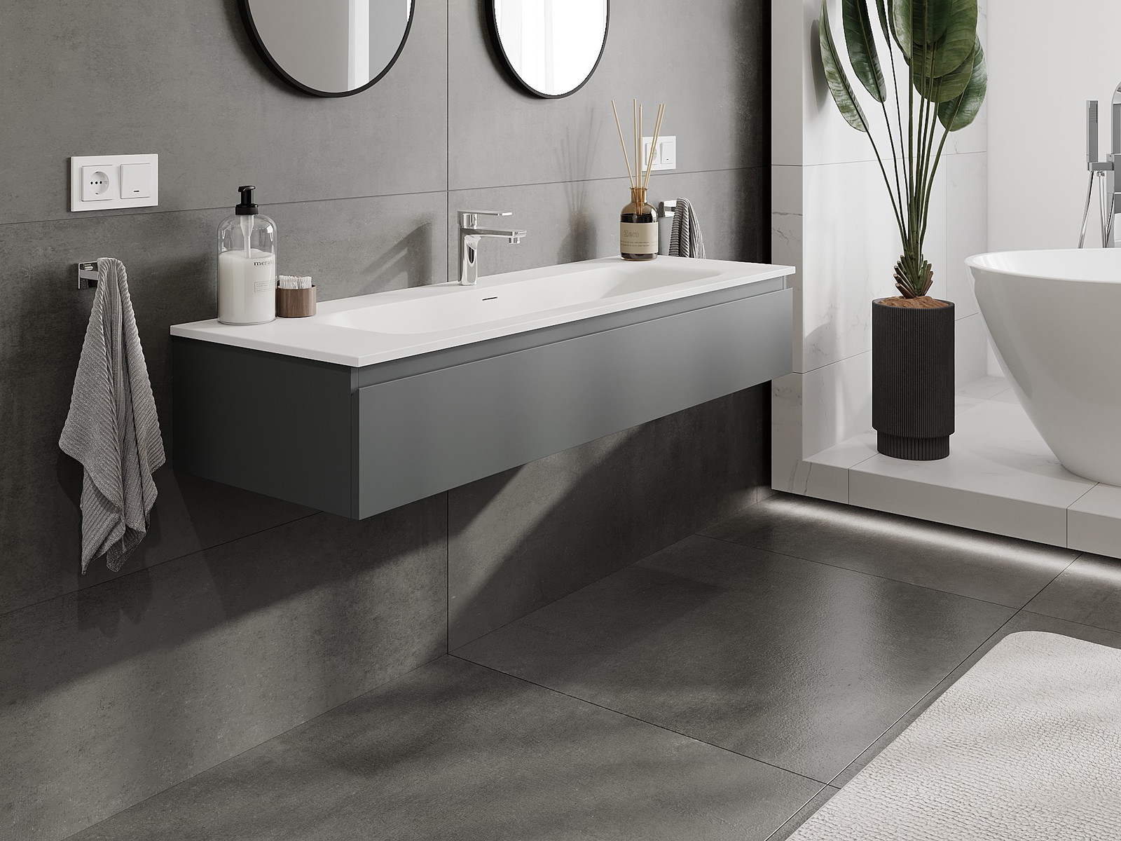 Mexen Orio meuble de salle de bains 140 cm avec lavabo Vela, 1 tiroir, graphite mat/blanc mat - 91A10-14023-1-BF66-W23M01