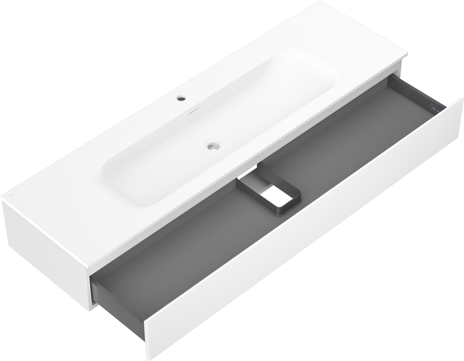 La découpe dans le tiroir est conçue de manière à accueillir le siphon, qui est nécessaire dans les installations de lavabo. Ainsi, le meuble peut être installé de manière pleinement fonctionnelle, sans devoir renoncer à l'espace du tiroir au profit de l'installation.