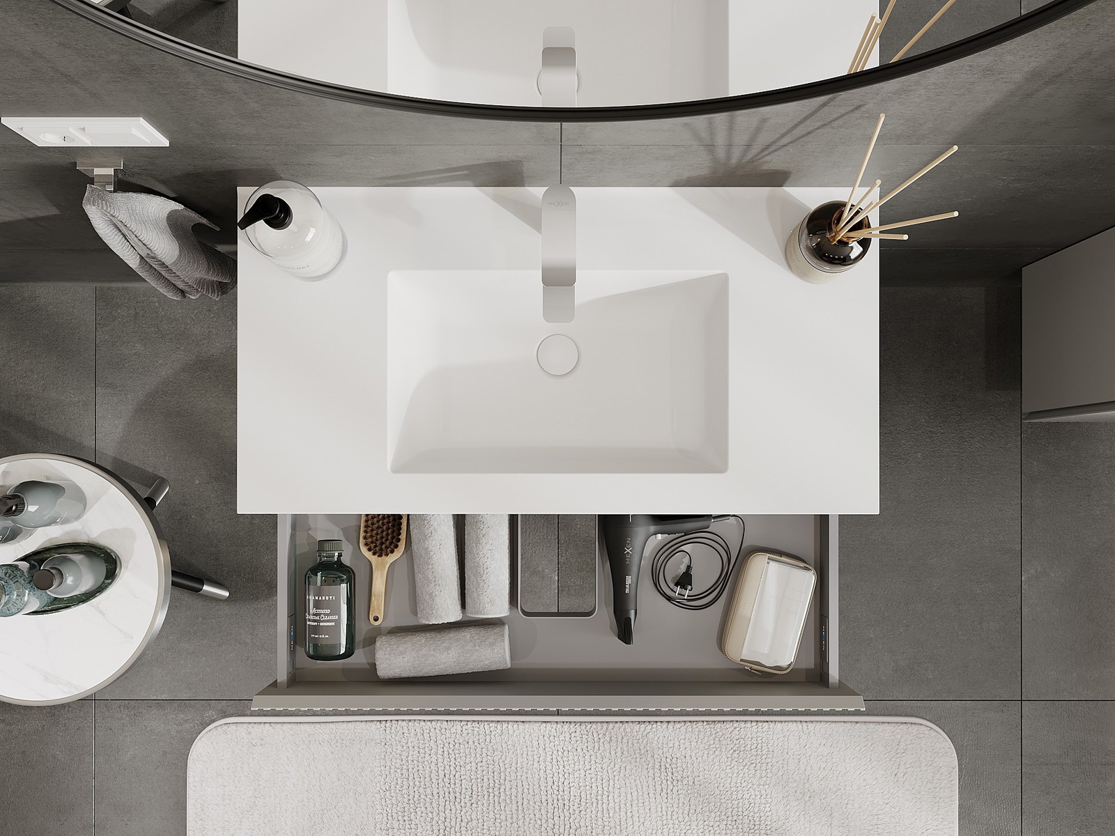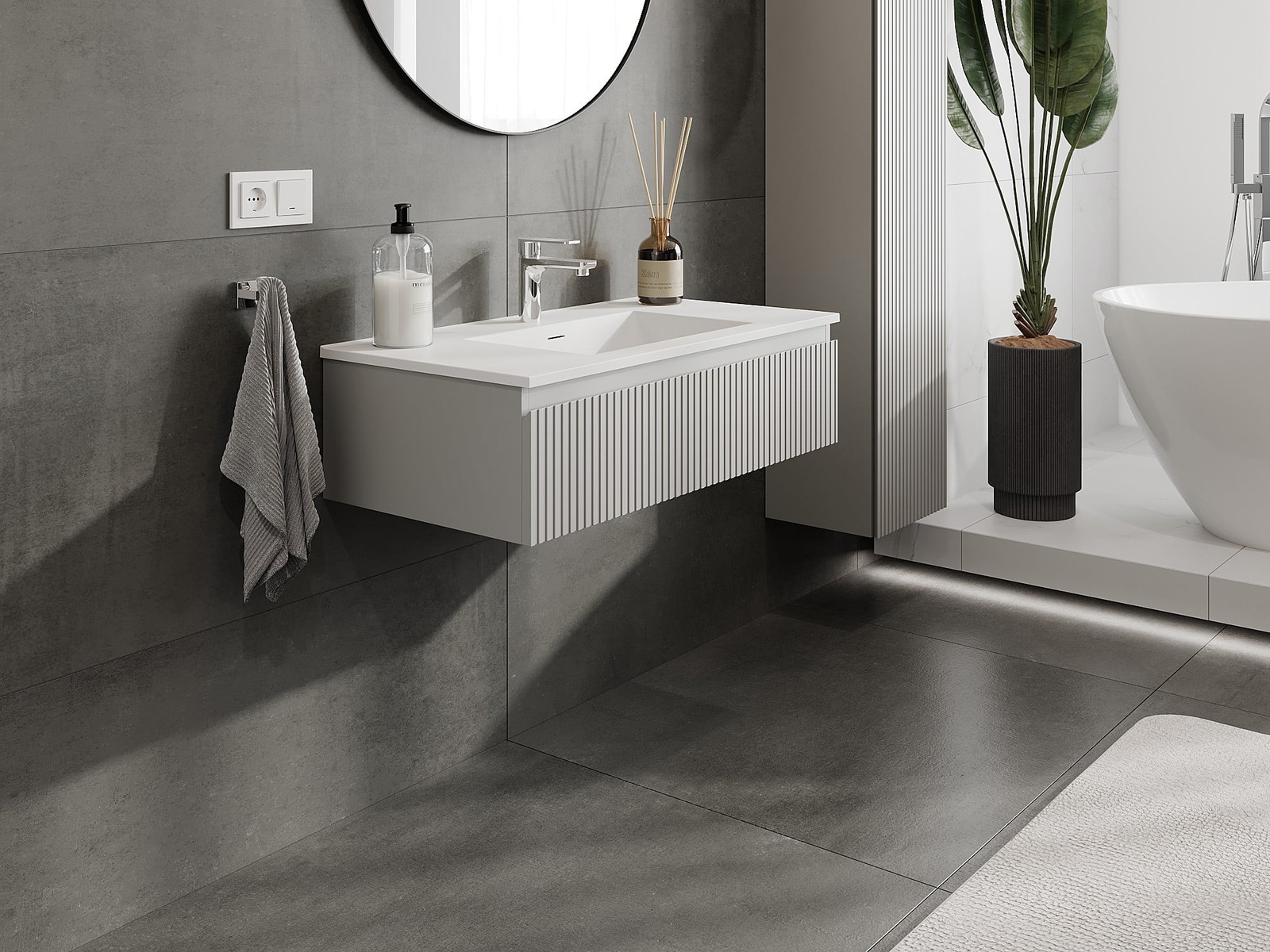 Mexen Rivel armoire de salle de bain 90 cm avec lavabo Otis, 1 tiroir, rainuré, gris mat/blanc mat - 91A20-09023-1-BF62-W18M01