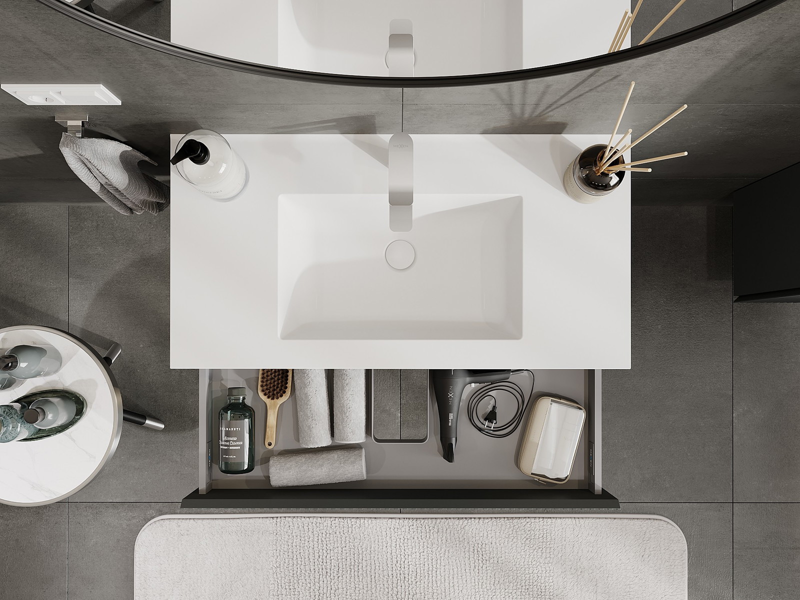 Mexen Rivel armoire de salle de bain 90 cm avec lavabo Otis, 1 tiroir, rainurée, graphite mat/blanc mat