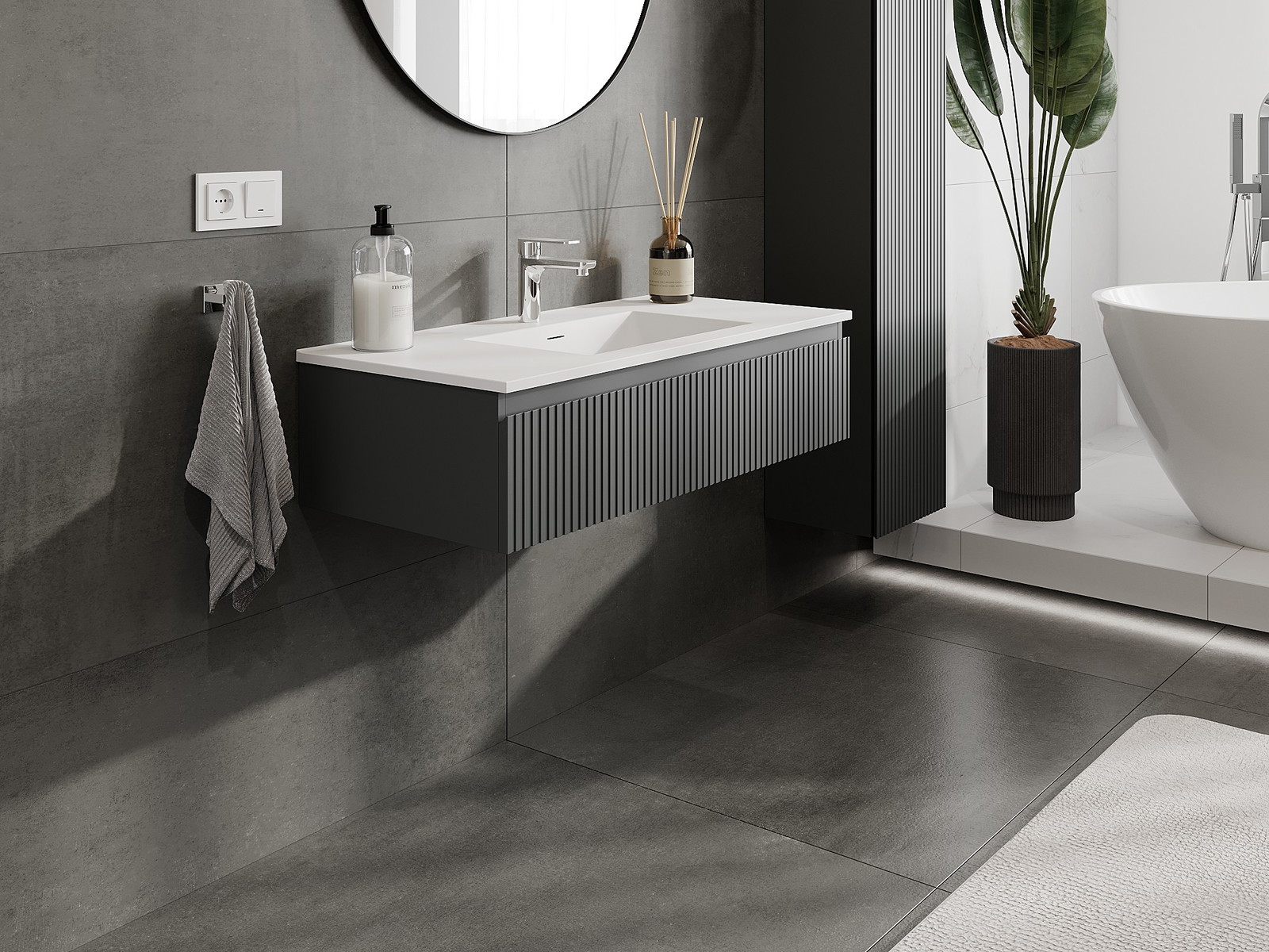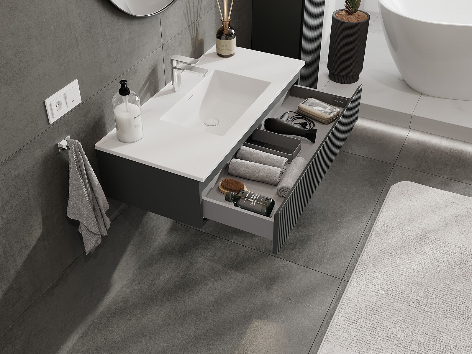 Mexen Rivel meuble de salle de bains 100 cm avec lavabo Otis, 1 tiroir, rainuré, graphite mat/blanc mat
