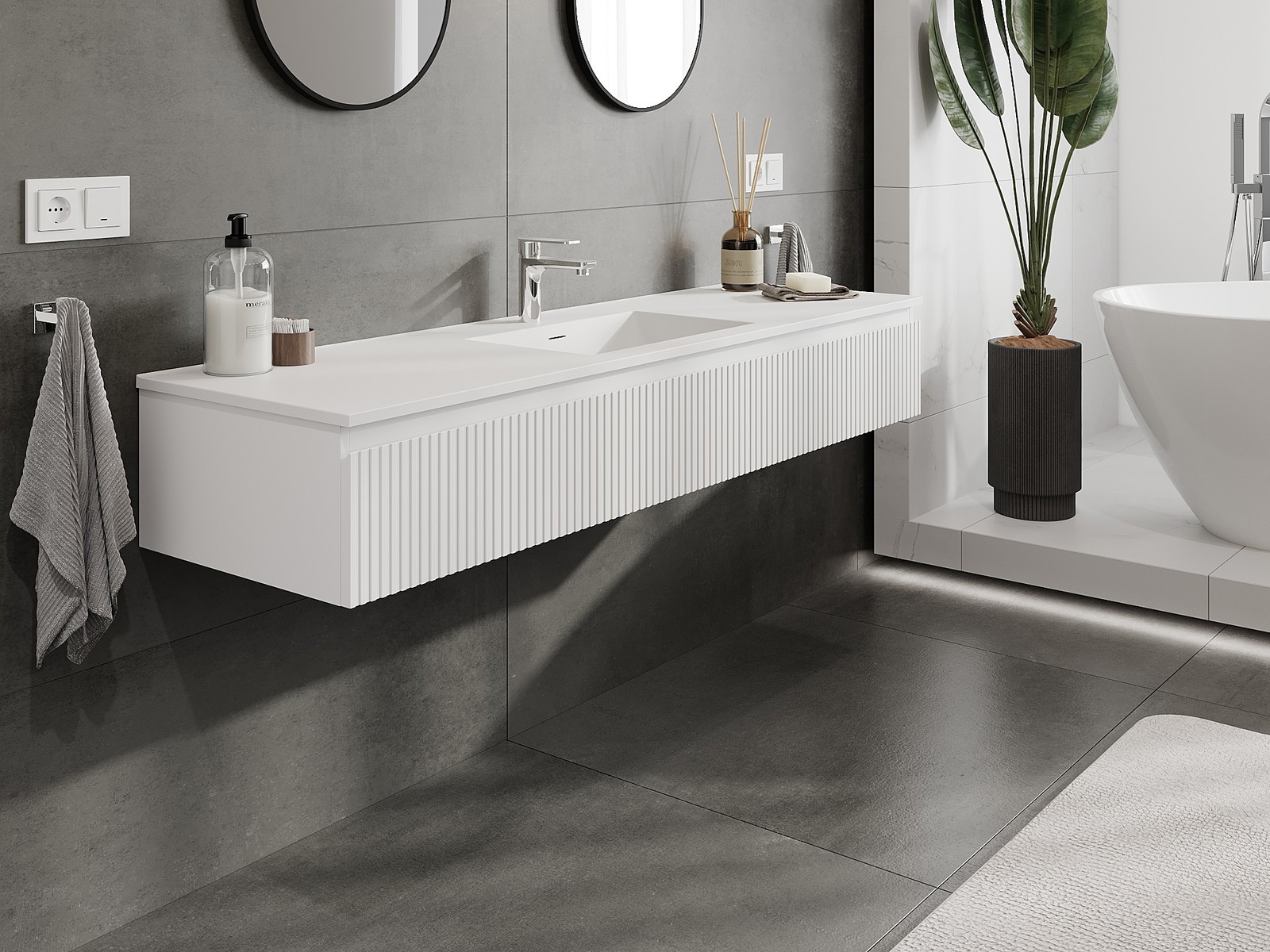 Mexen Rivel meuble de salle de bain 160 cm avec lavabo Otis, 1 tiroir, rainuré, blanc mat - 91A20-16023-1-BF01-W18M01