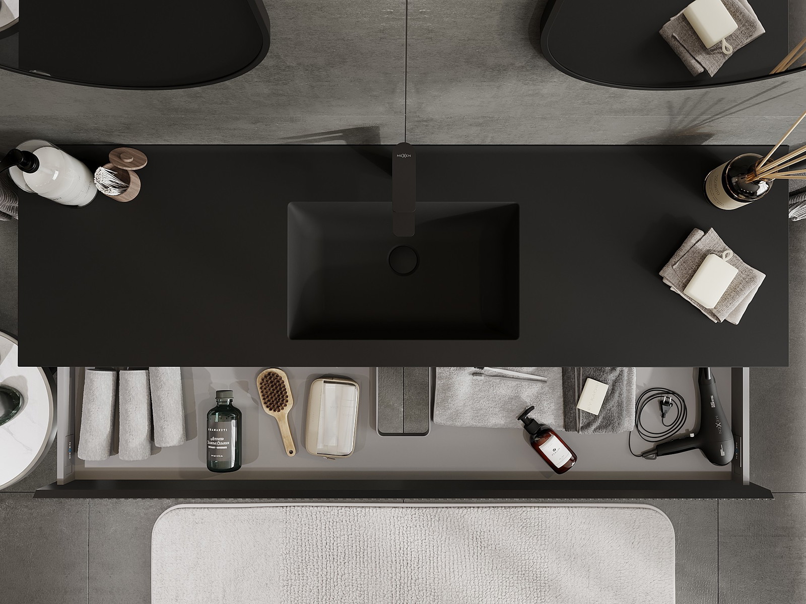 Mexen Rivel meuble de salle de bain 160 cm avec lavabo Otis, 1 tiroir, rainuré, noir mat - 91A20-16023-1-BF71-W18M71