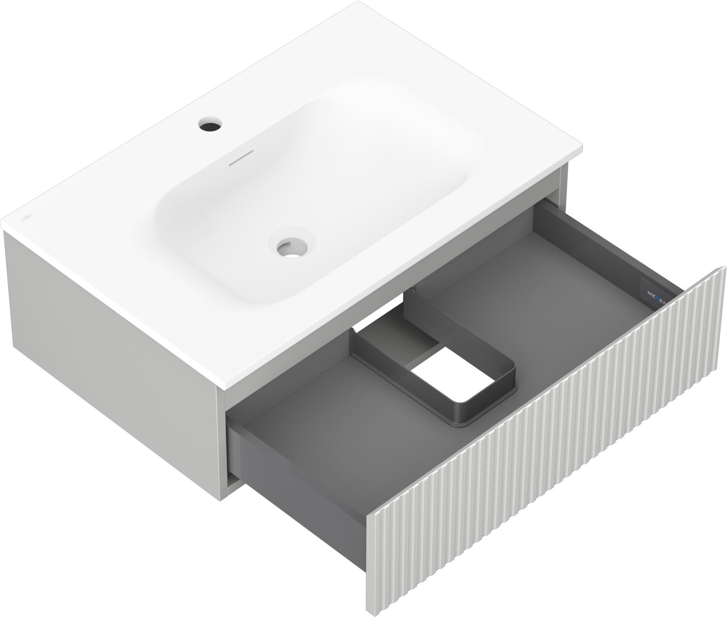 Mexen Rivel armoire de salle de bain 70 cm avec lavabo Vela, 1 tiroir, rainurée, gris mat/blanc mat - 91A20-07023-1-BF62-W23M01